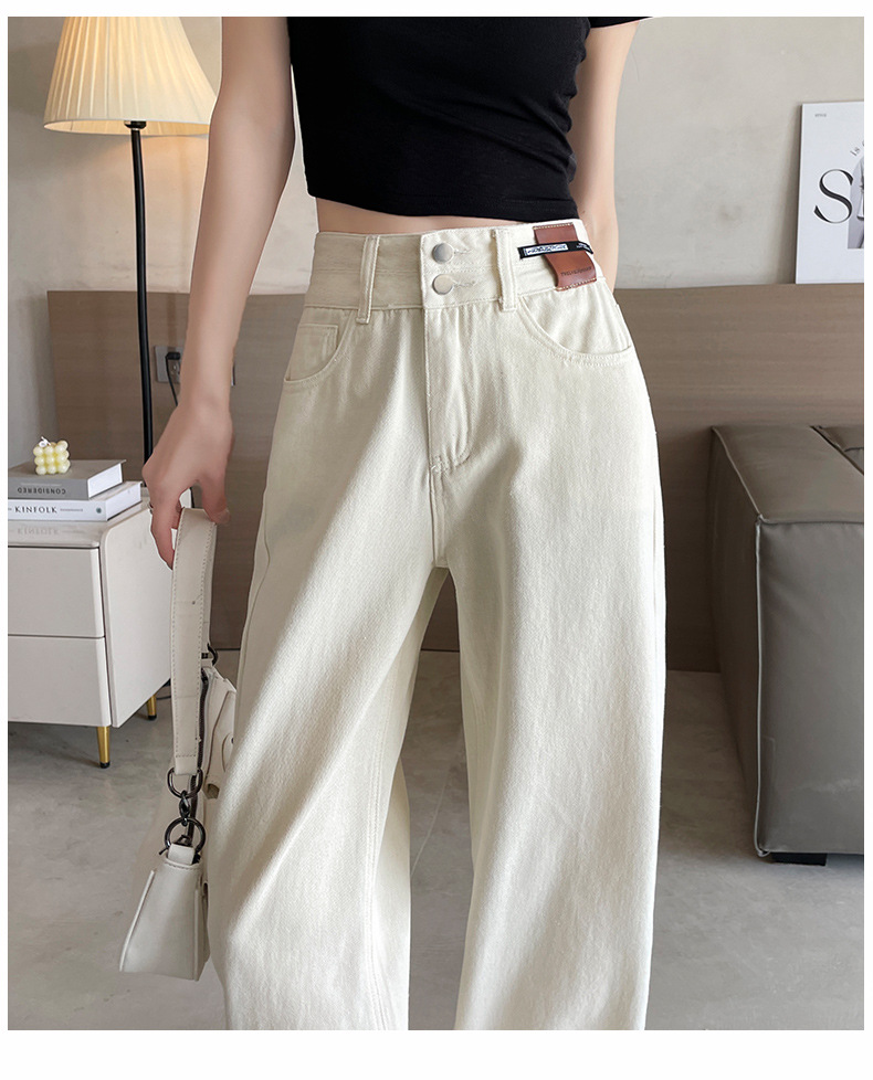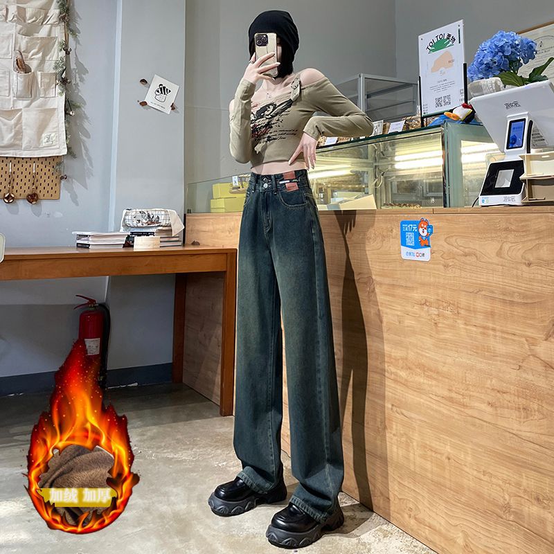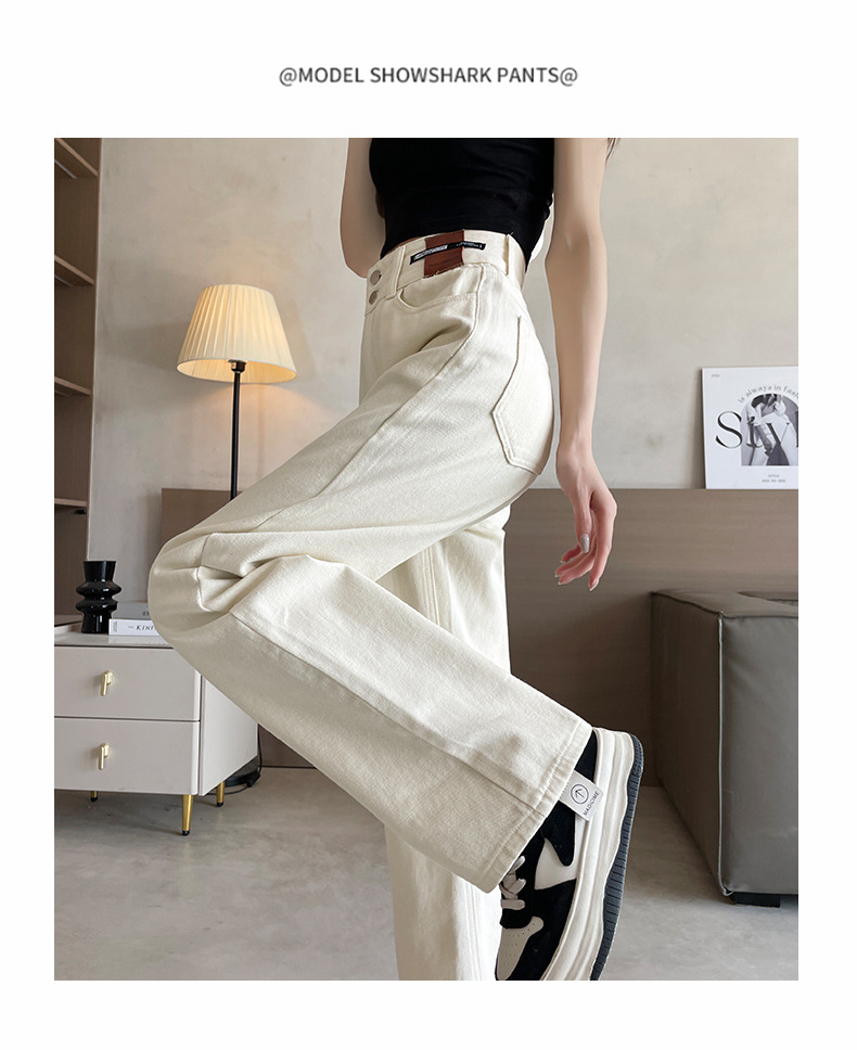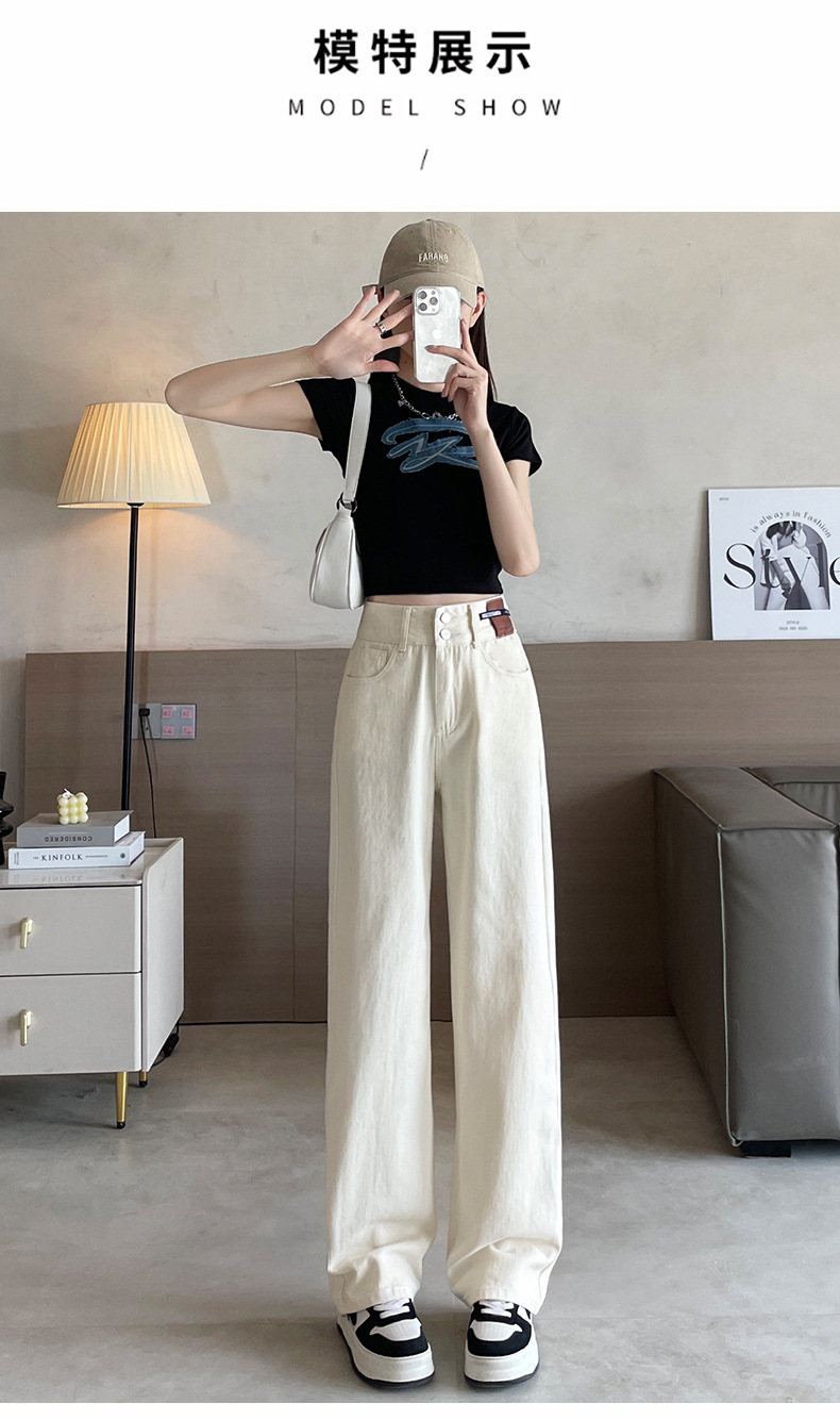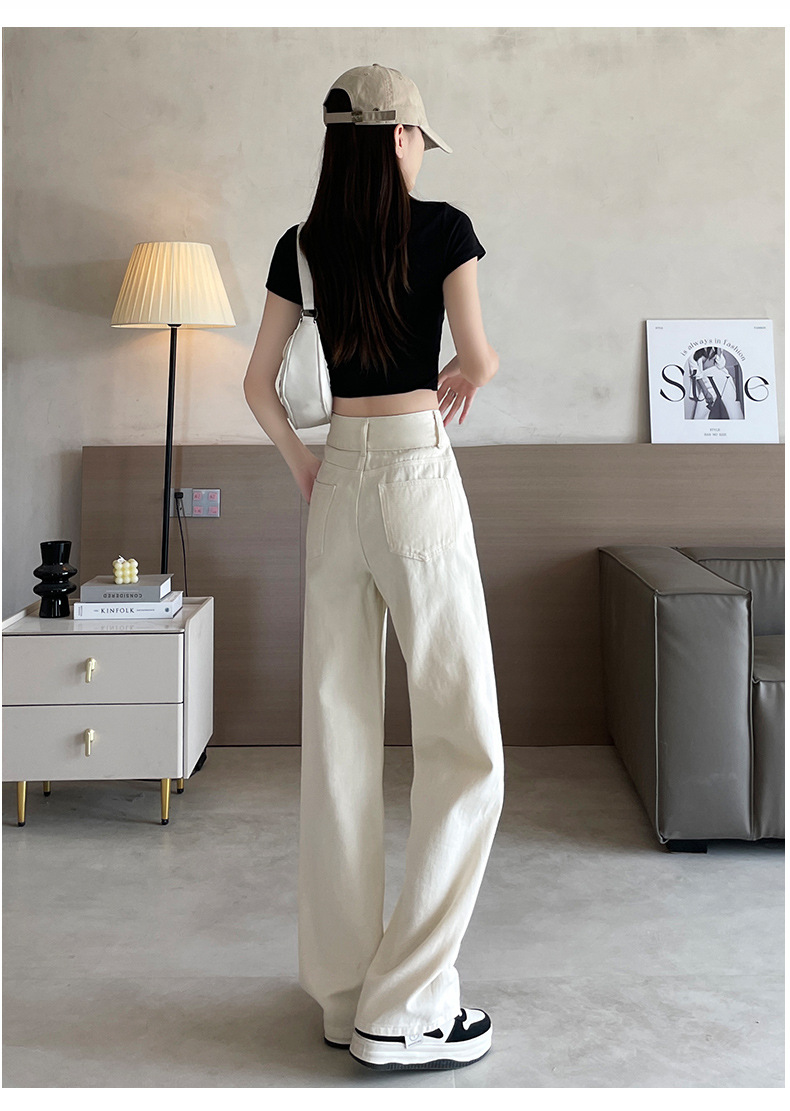 9815 데님 스트레이트 다리 바지 느슨한 넓은 다리 좁은 청바지 높은 허리 두 배 가슴 우아한 슬리밍 다리 길이스토어 가기