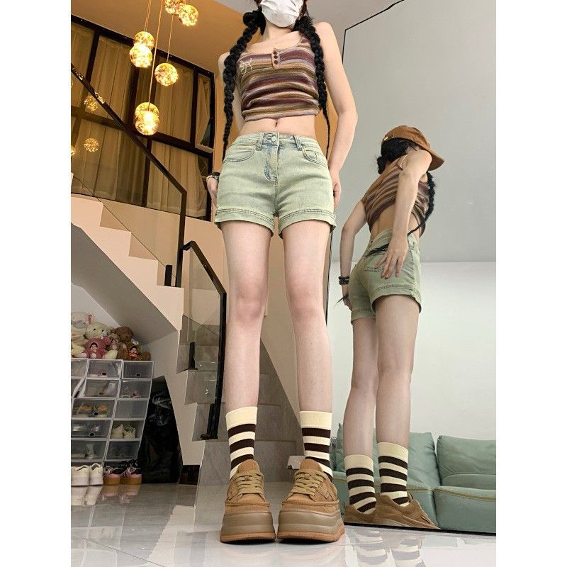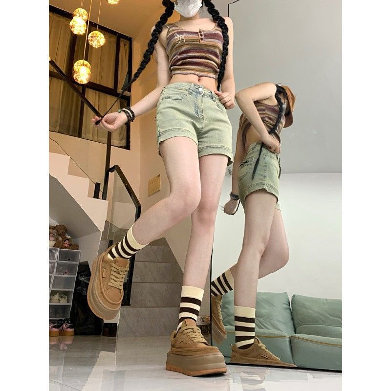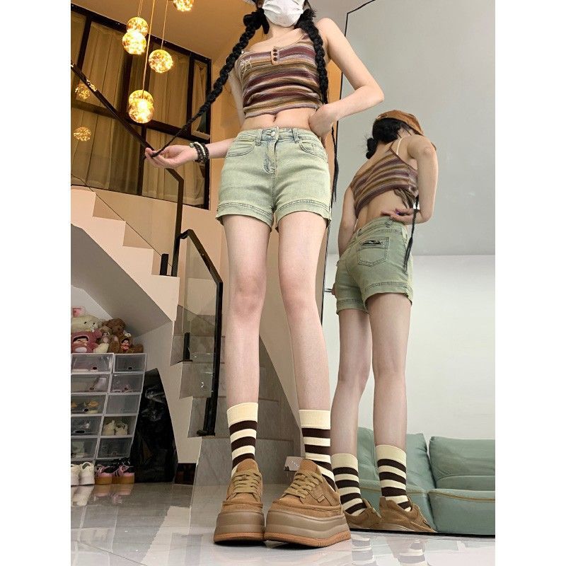미국 데님 반바지 여성 여름 2024 새로운 느슨한 슬림 A 라인 디자인 센스 미국 핫 바지스토어 가기