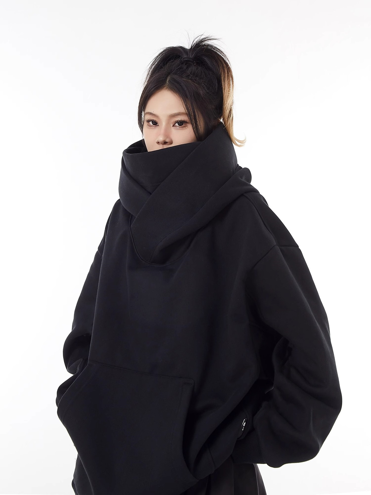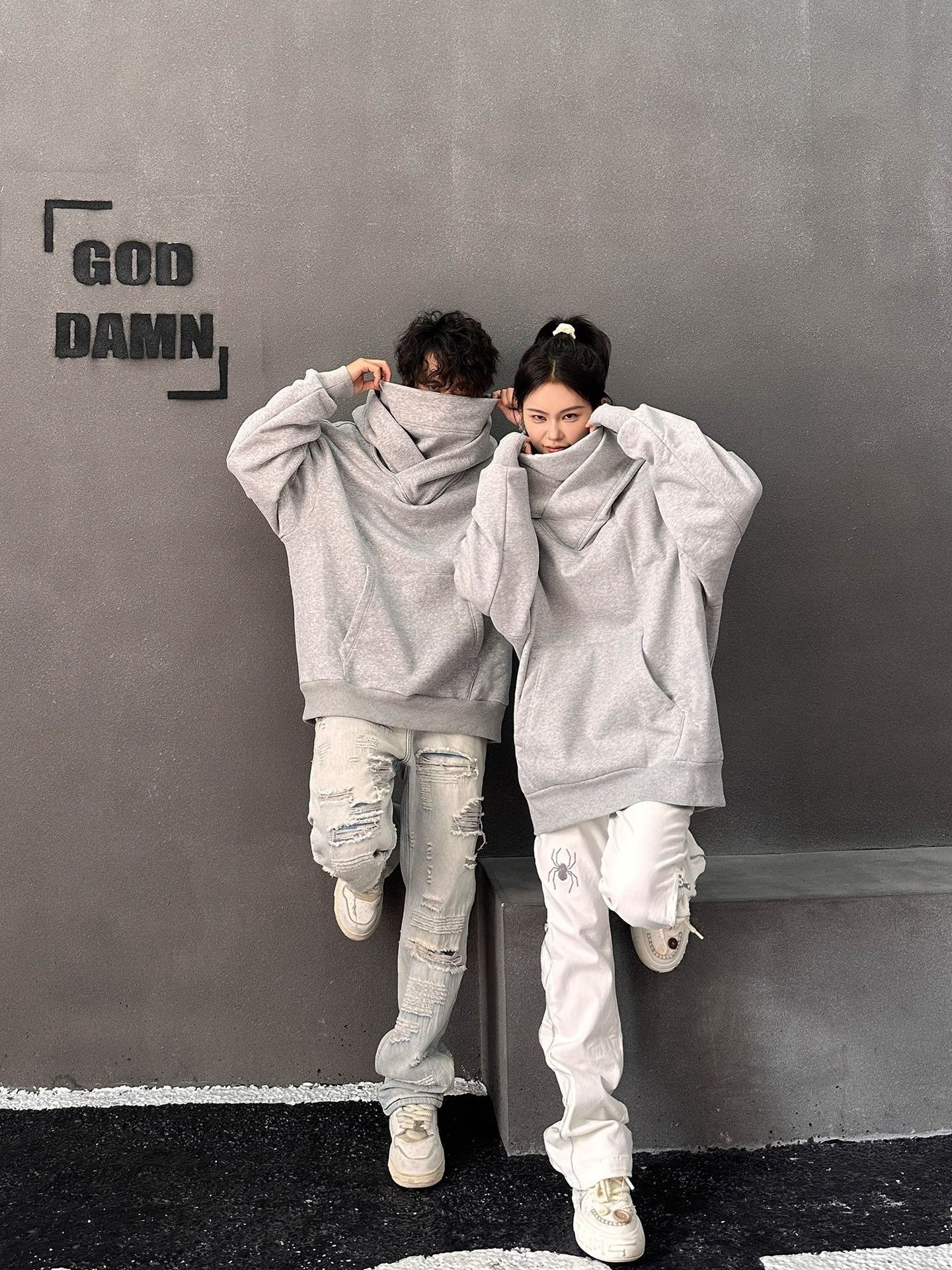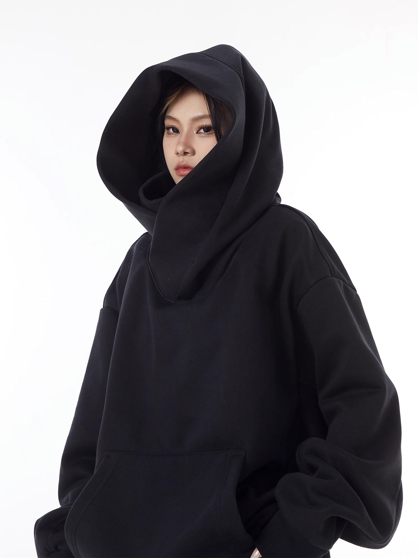 미국 스타일의 트렌디 한 브랜드 기능성 재킷 남성과 여성을위한 높은 칼라 후드 기모 스웨트 셔츠 틈새 디자인 감각 느슨한 사회 공포 탑스토어 가기