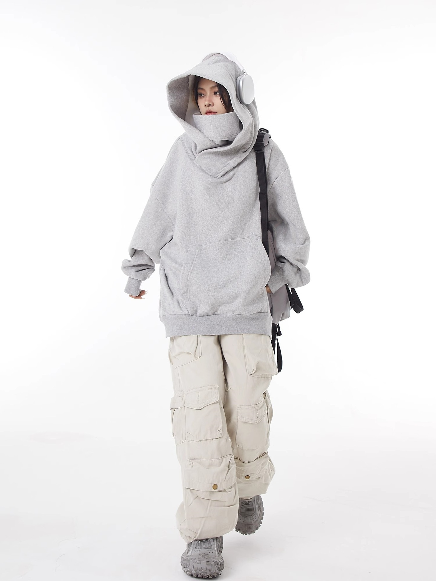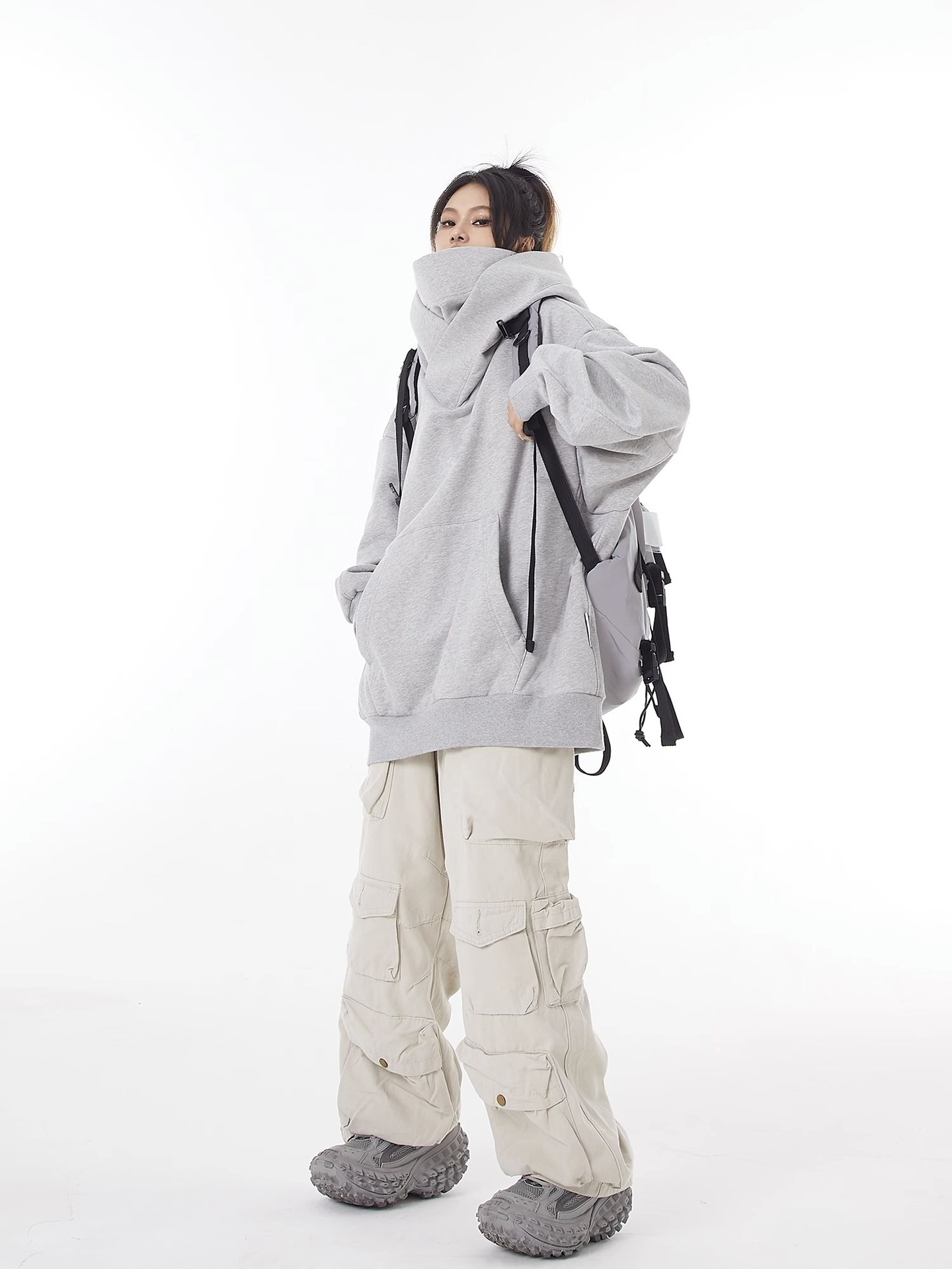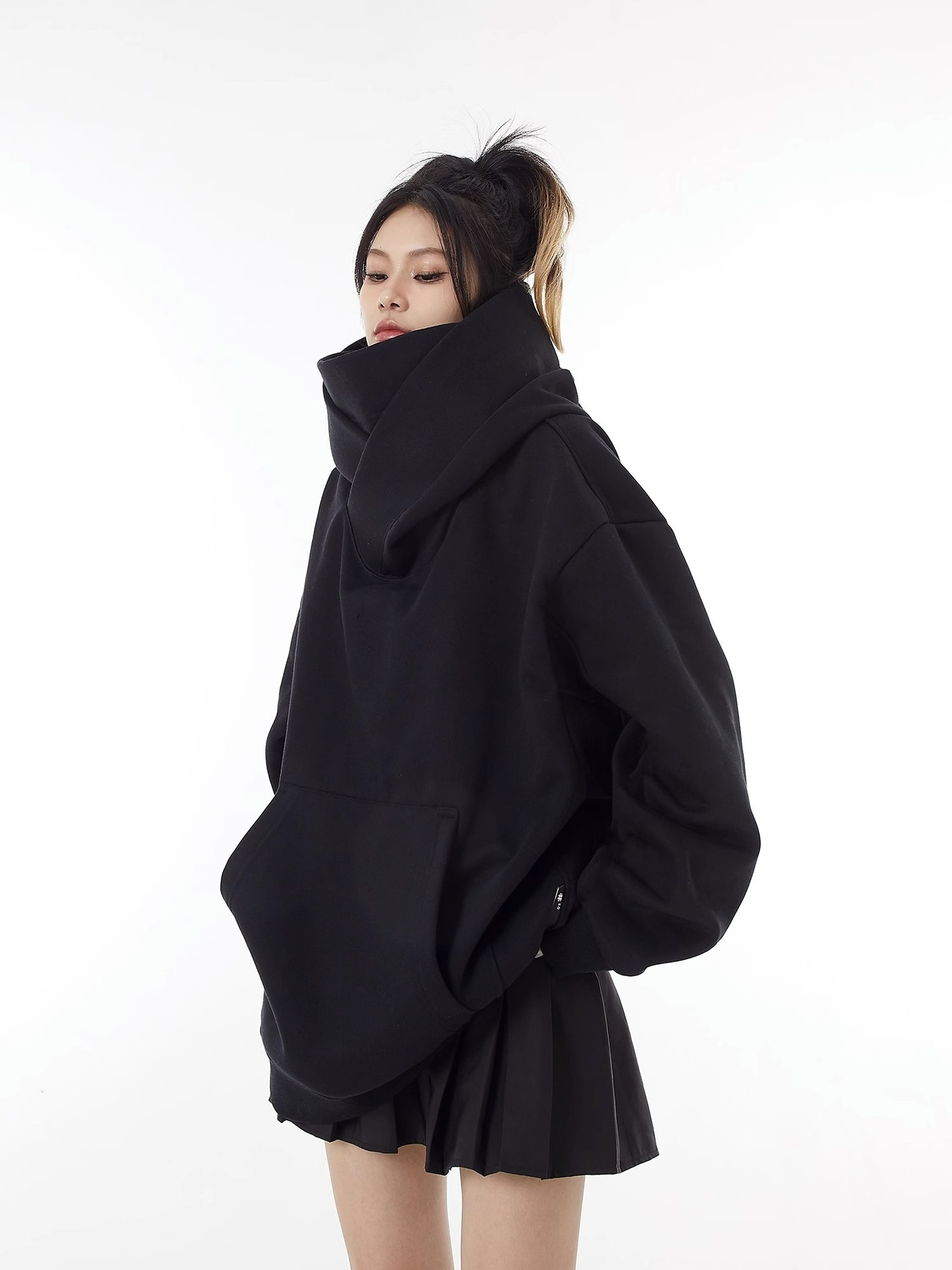 미국 스타일의 트렌디 한 브랜드 기능성 재킷 남성과 여성을위한 높은 칼라 후드 기모 스웨트 셔츠 틈새 디자인 감각 느슨한 사회 공포 탑스토어 가기