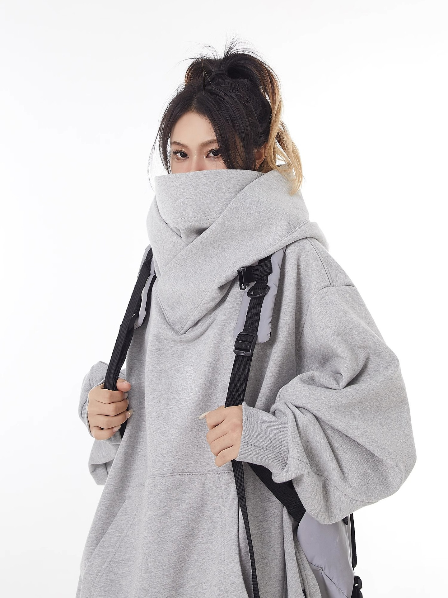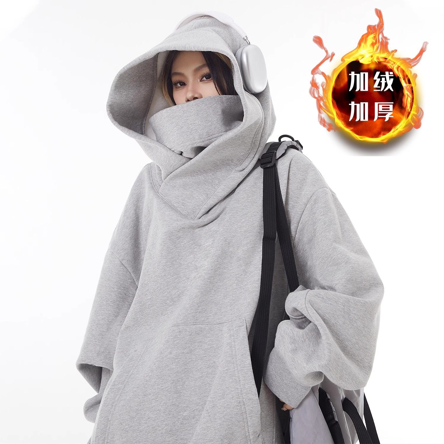미국 스타일의 트렌디 한 브랜드 기능성 재킷 남성과 여성을위한 높은 칼라 후드 기모 스웨트 셔츠 틈새 디자인 감각 느슨한 사회 공포 탑