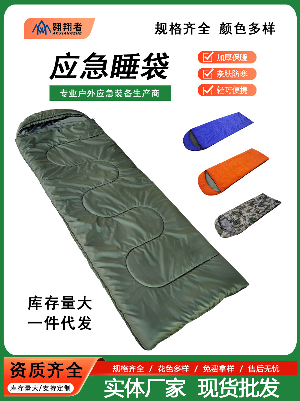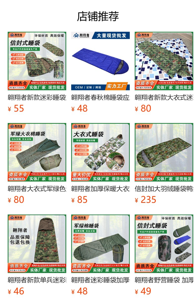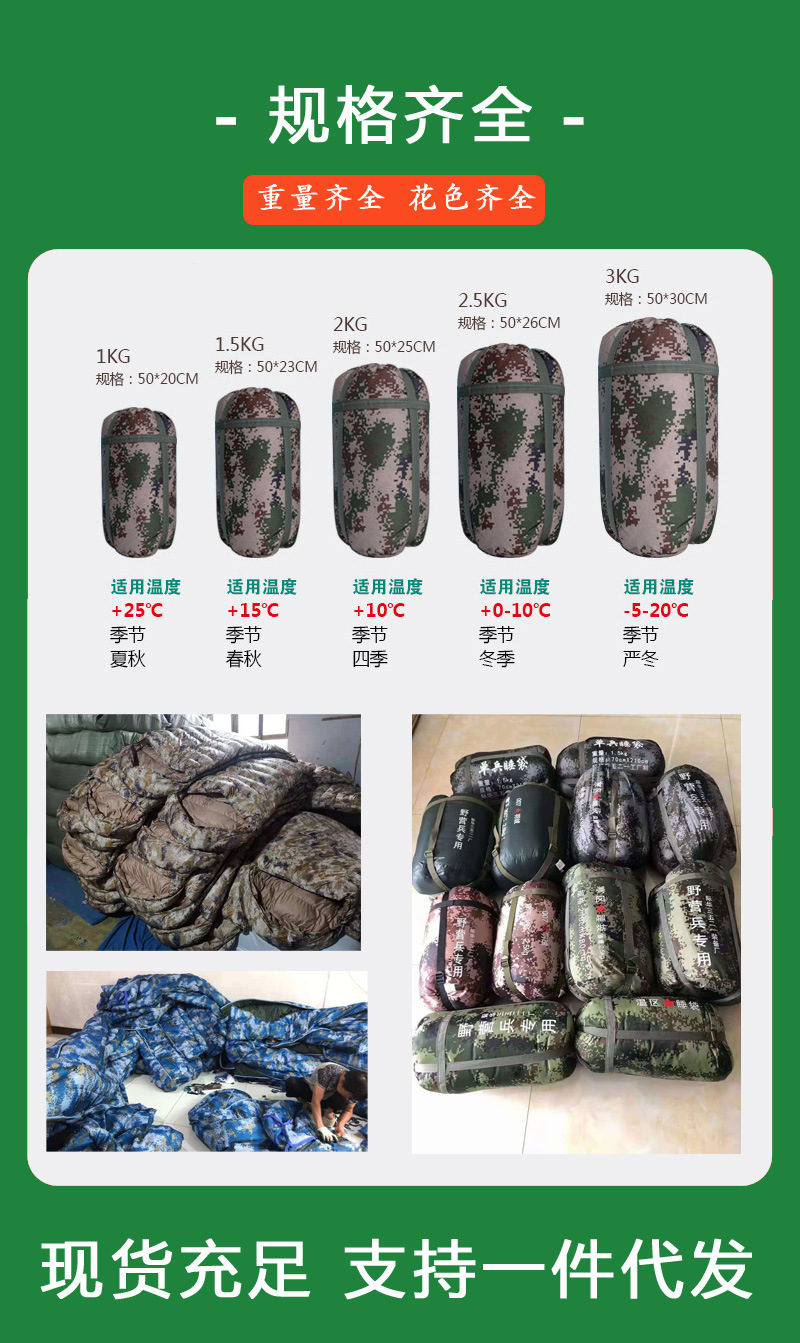 플라잉 위장 침낭 두꺼운 따뜻한 야외 캠핑 휴대용 비상 재해 구호 색상 전체 공장 도매스토어 가기