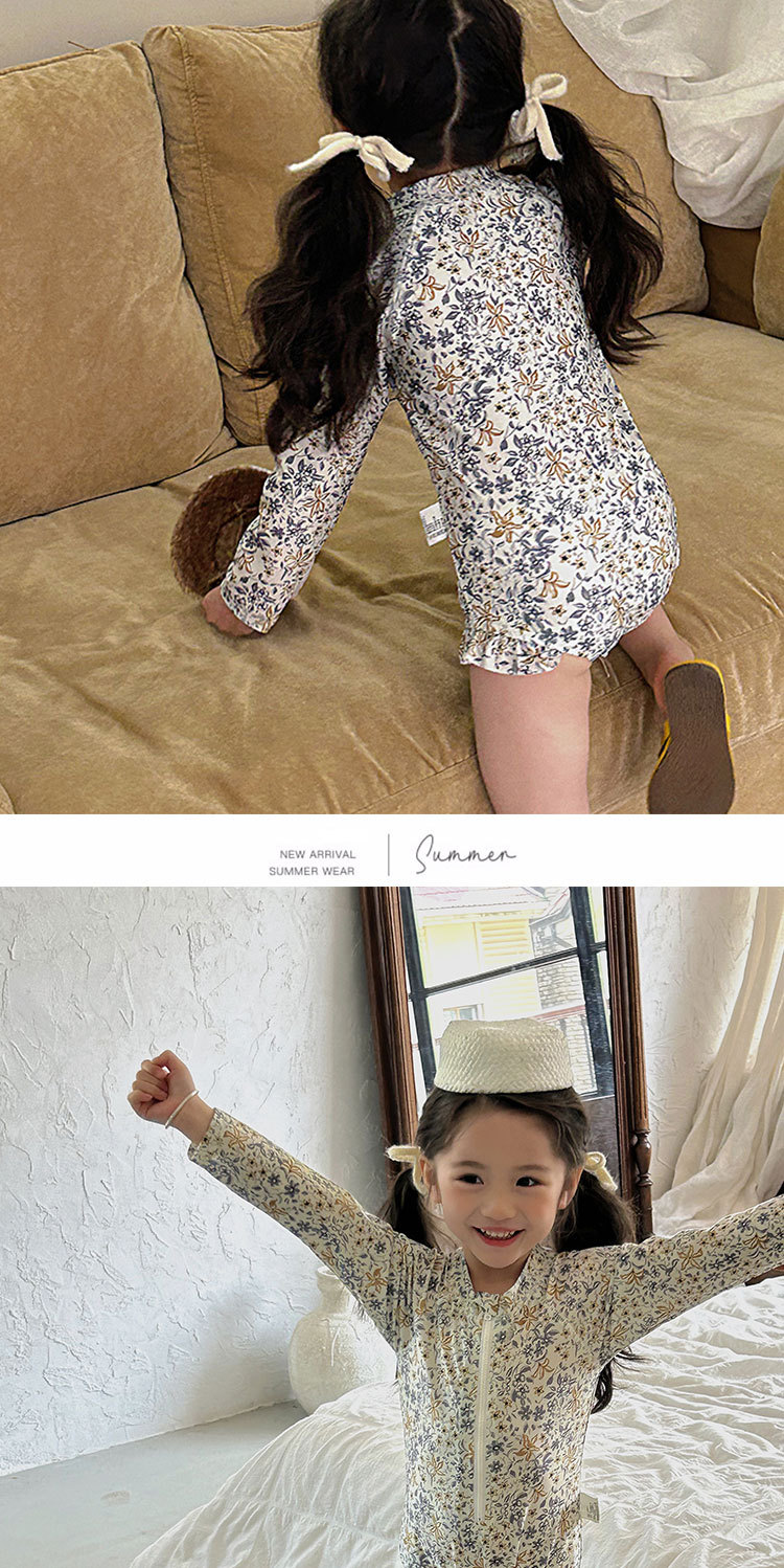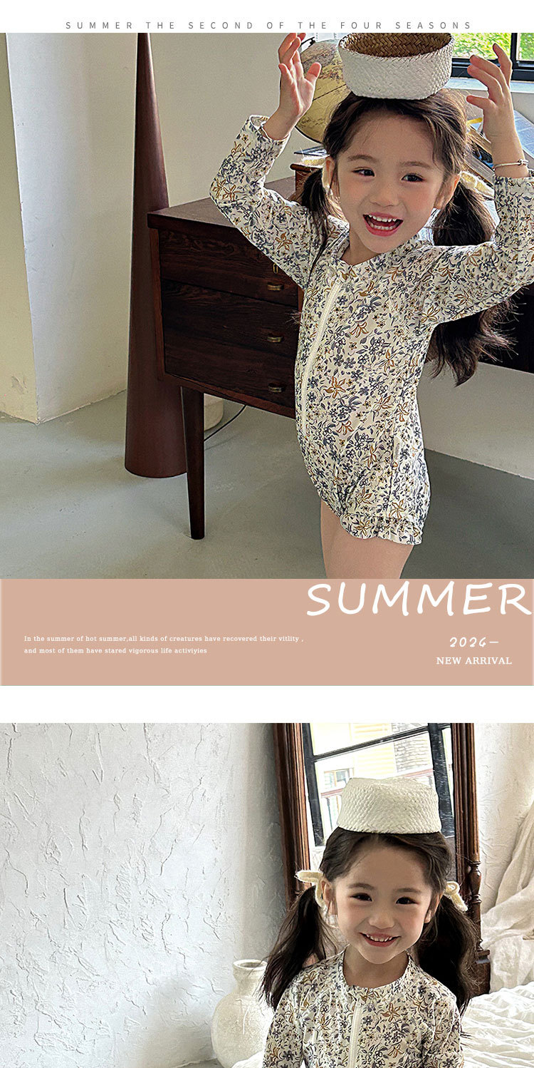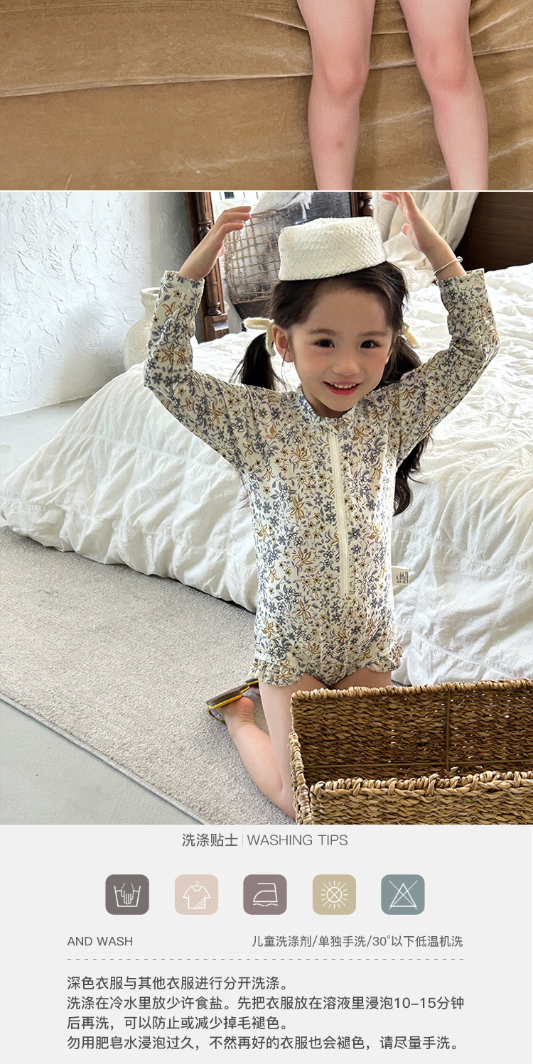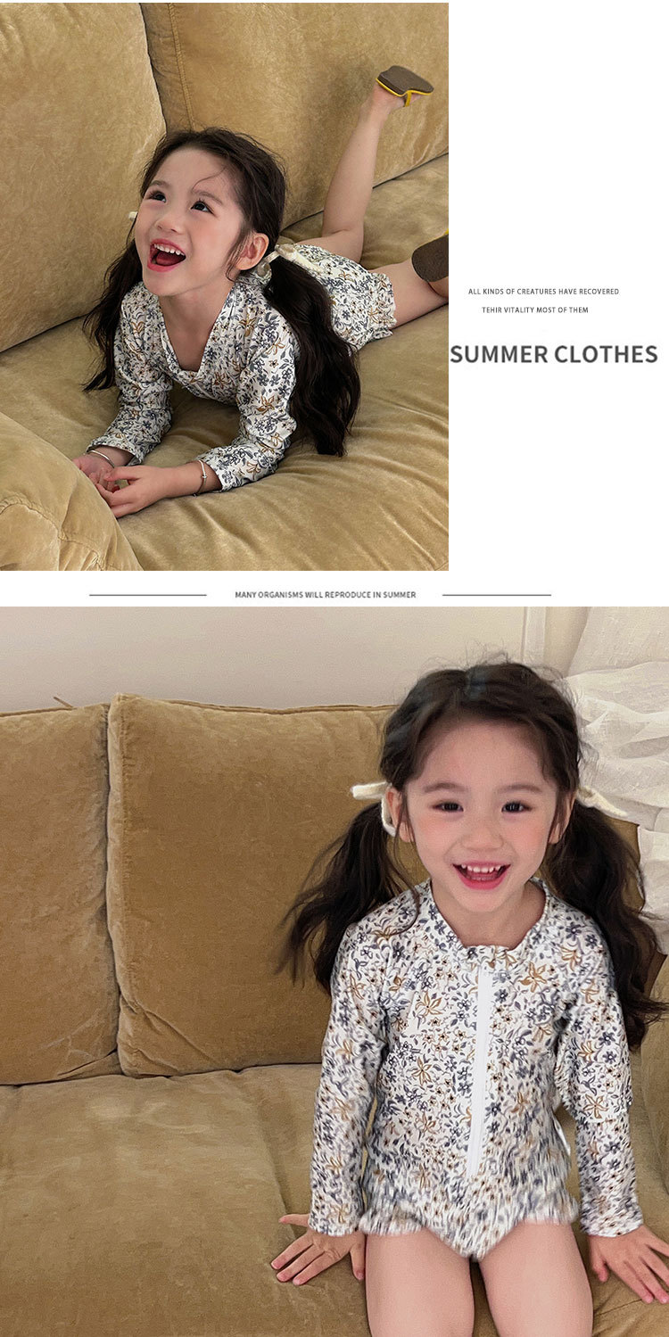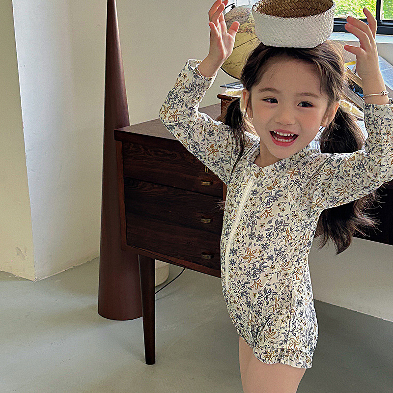 여름 어린이 원피스 수영복 소녀의 선 스크린 긴팔 꽃 수영복 비치 온천 휴가 서양식 스위트 수영복스토어 가기