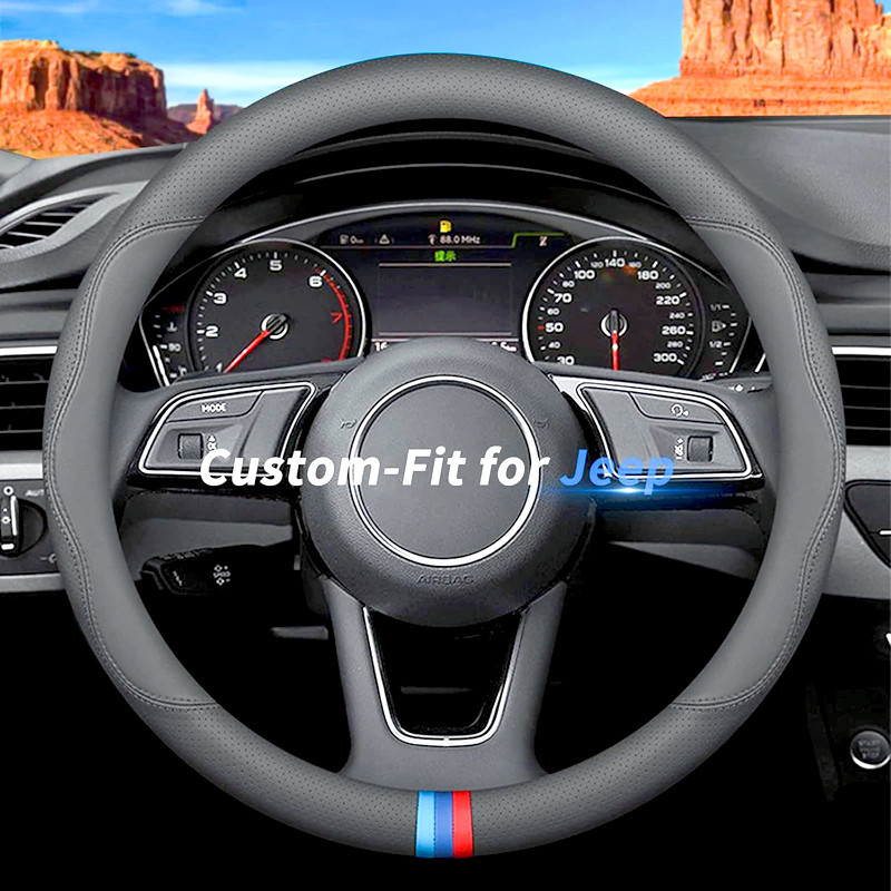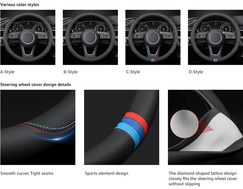 새로운 트렌드 Nappa 가죽 자동차 스티어링 휠 커버 범용 15 인치 37-38cm 블랙 미끄럼 통기성 핸들 커버