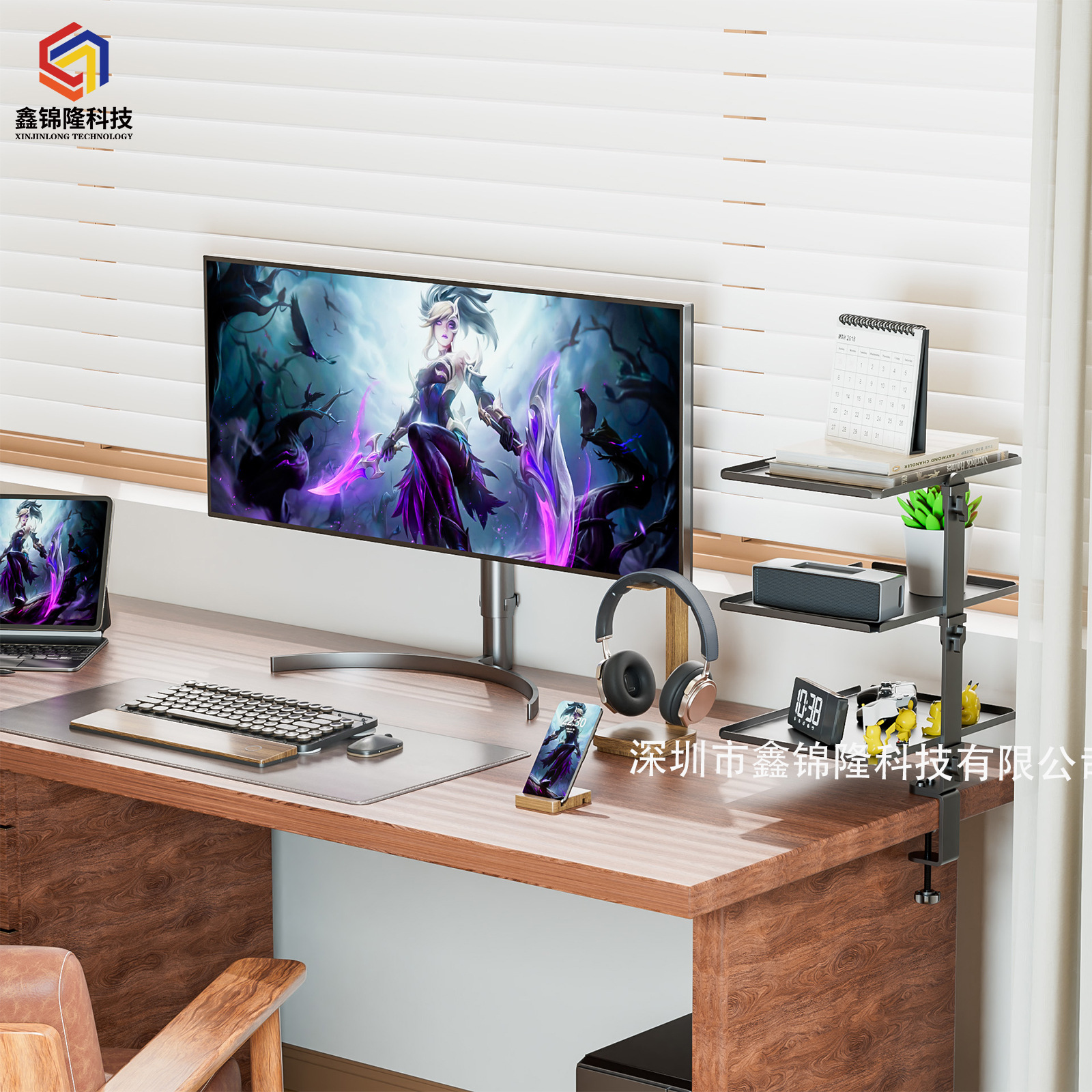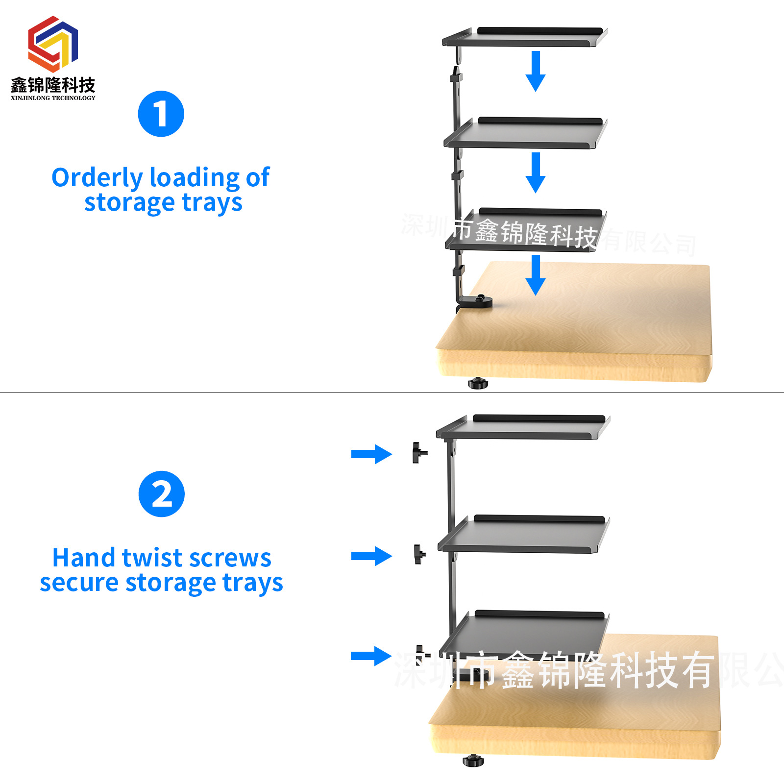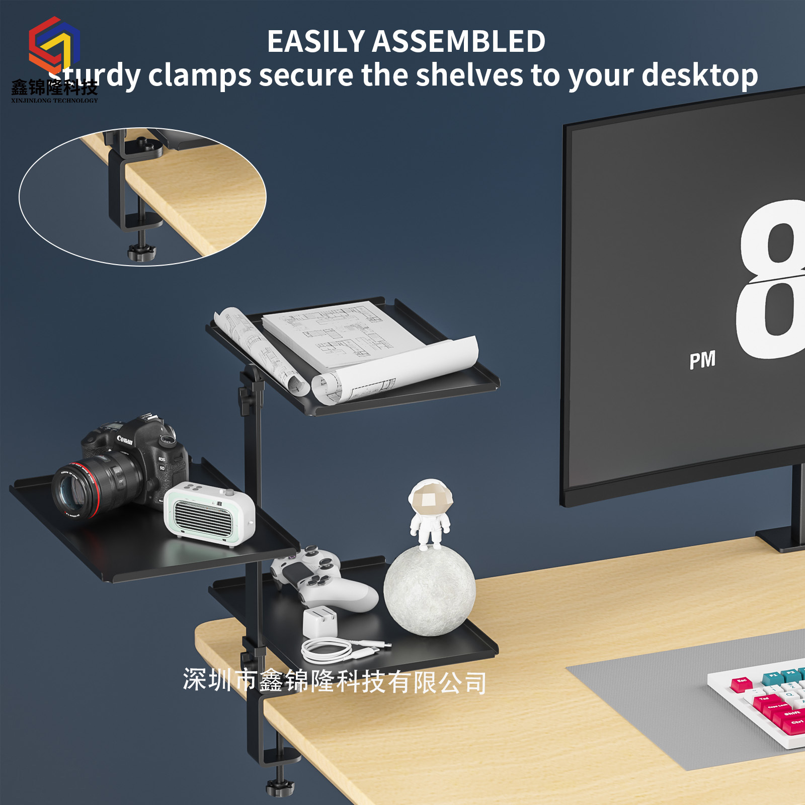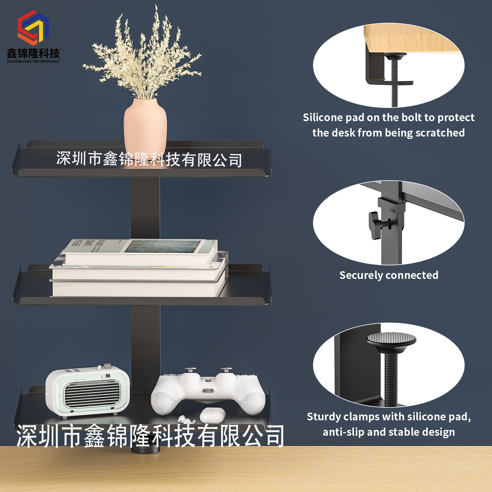 새로운 3 층 테이블 사이드 스토리지 브래킷 조정 가능한 금속 저장 트레이 컴퓨터 데스크 스토리지 랙 사무실에 적합