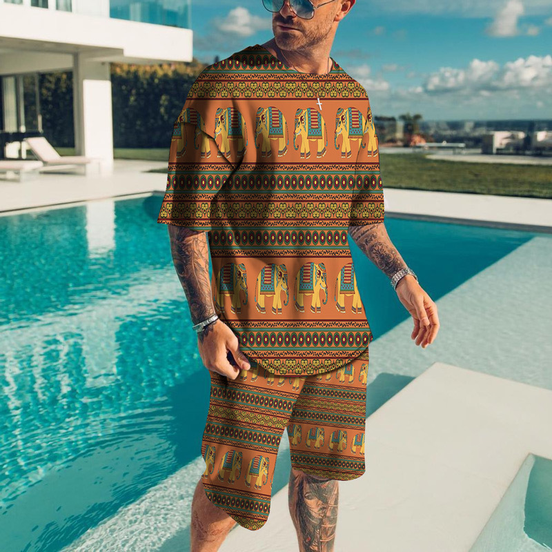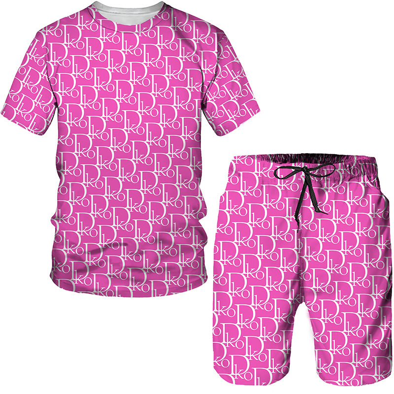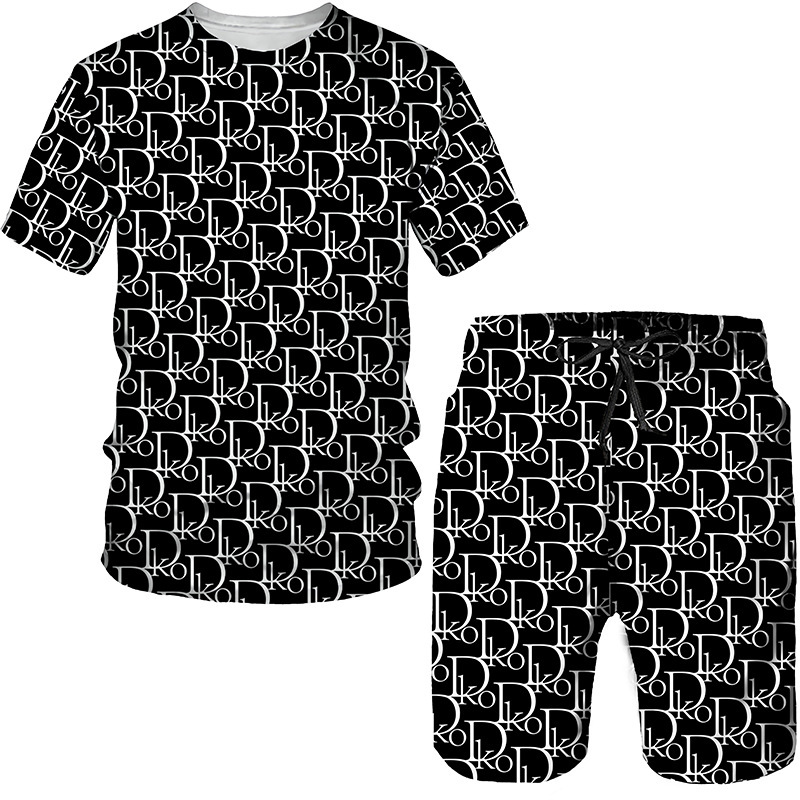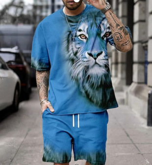 크로스 보더 AliExpress 새로운 패션 3D 라이온 프린트 남성 스포츠웨어 2 피스 세트 여름 세트 티셔츠 반바지스토어 가기