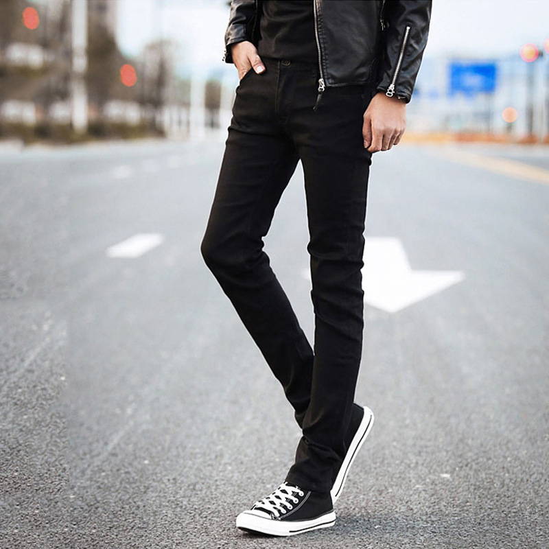 봄과 가을 검은 스트레치 청바지 남성용 한국식 슬림핏 스키니 바지 남성용 캐주얼 바지 트렌디 브랜드 남성용 발목 길이 바지스토어 가기