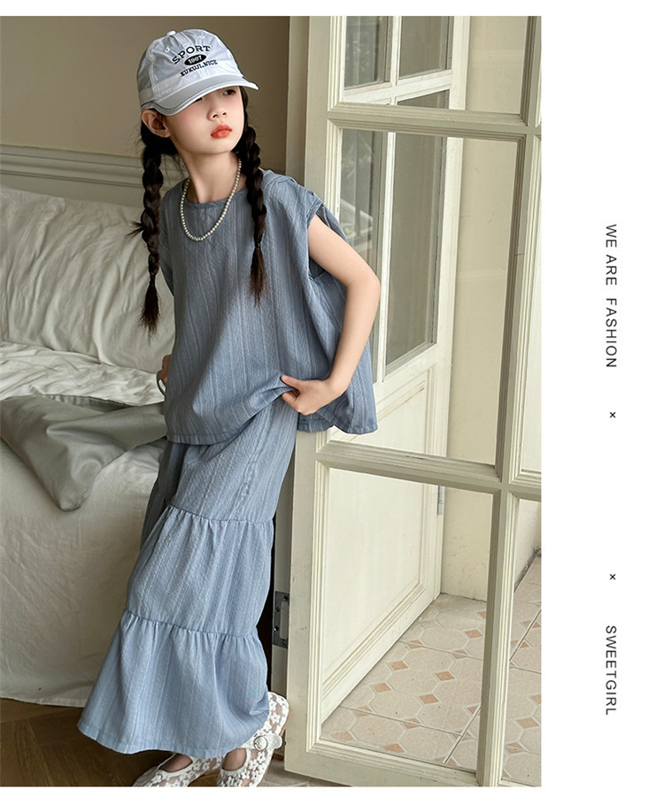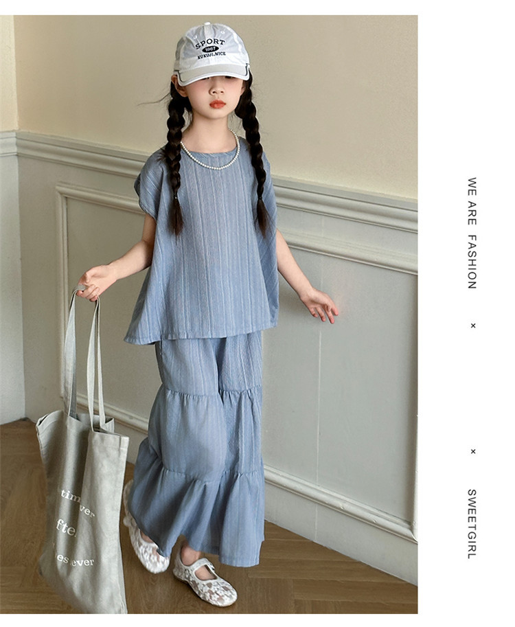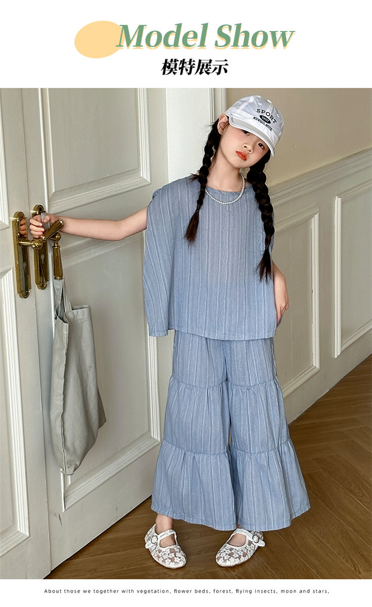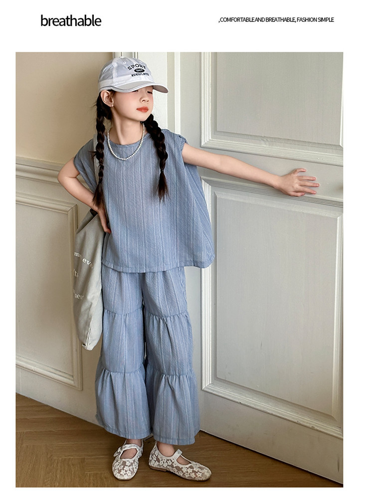 소녀 한국 스타일 세트 2024 새로운 스타일 느슨한 한국 스타일 투피스 세트 소녀 여름 캐주얼 어린이 옷스토어 가기