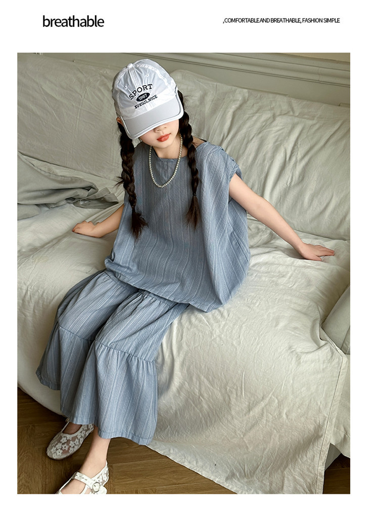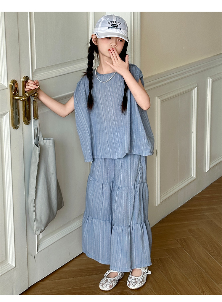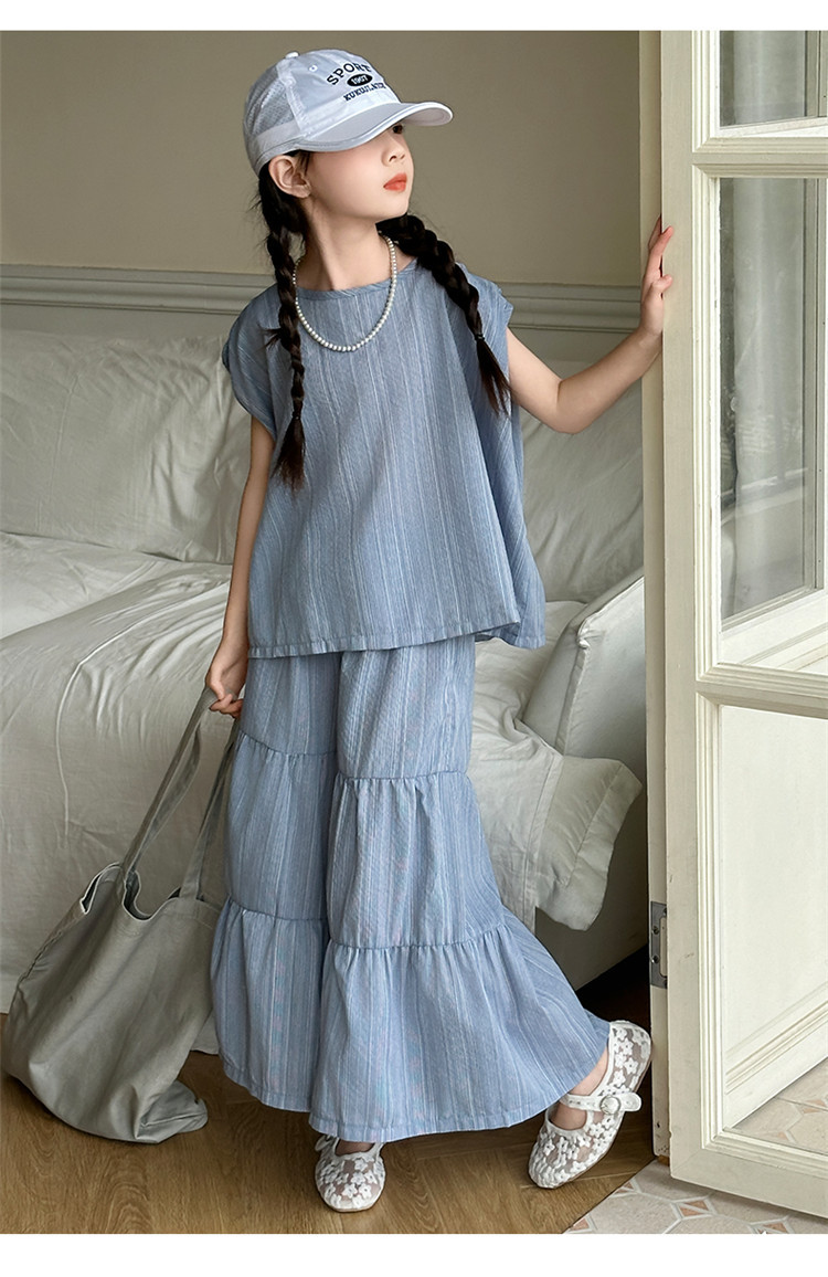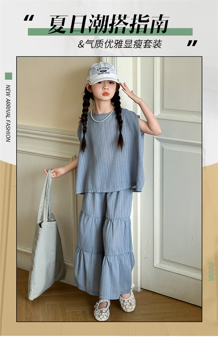 소녀 한국 스타일 세트 2024 새로운 스타일 느슨한 한국 스타일 투피스 세트 소녀 여름 캐주얼 어린이 옷스토어 가기