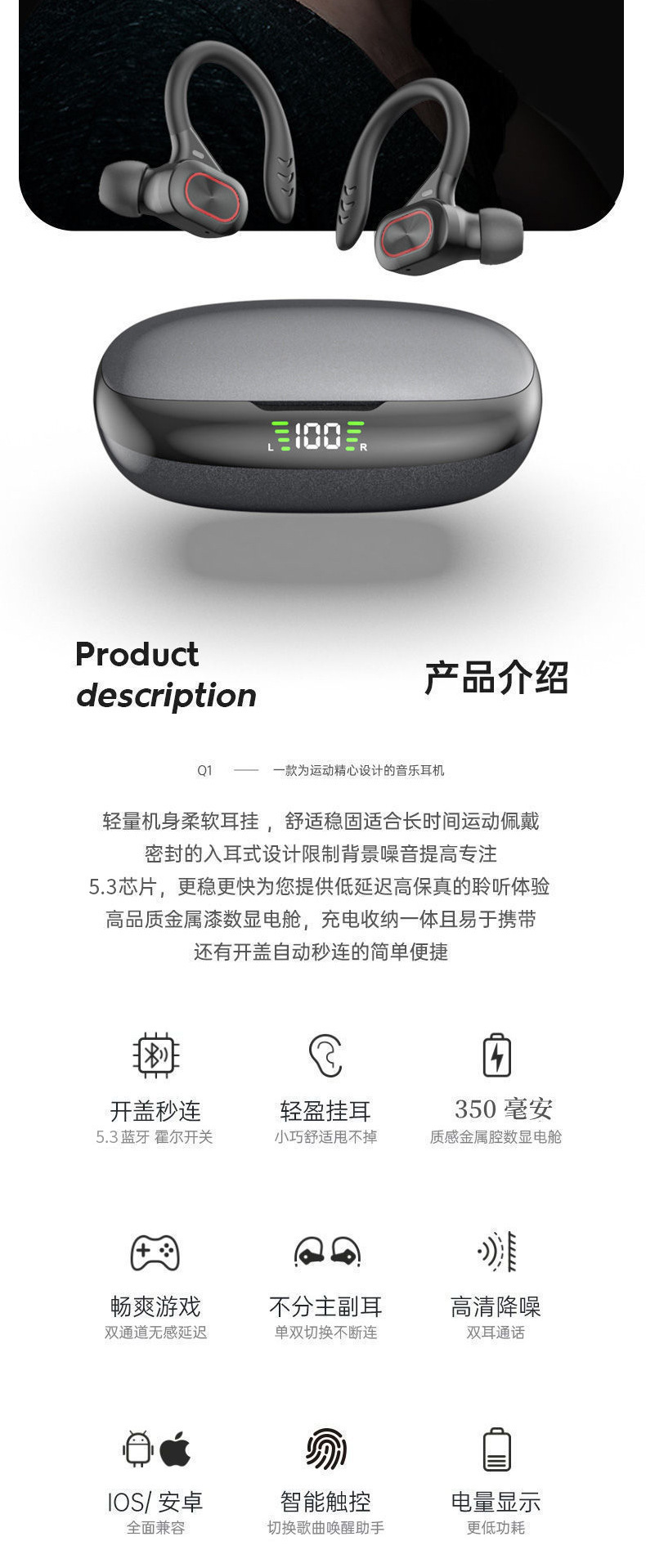 국경 간 폭발 SP16 무선 블루투스 헤드셋 듀얼 이어 디지털 디스플레이 교수형 귀 비즈니스 스포츠 음악 헤드셋 유니버설스토어 가기