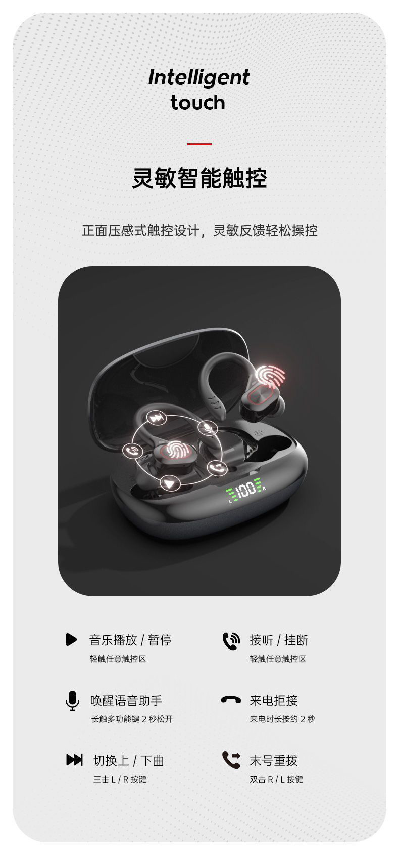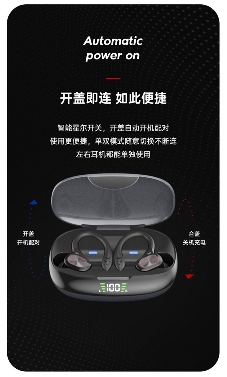 국경 간 폭발 SP16 무선 블루투스 헤드셋 듀얼 이어 디지털 디스플레이 교수형 귀 비즈니스 스포츠 음악 헤드셋 유니버설