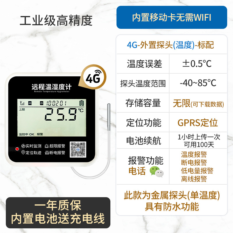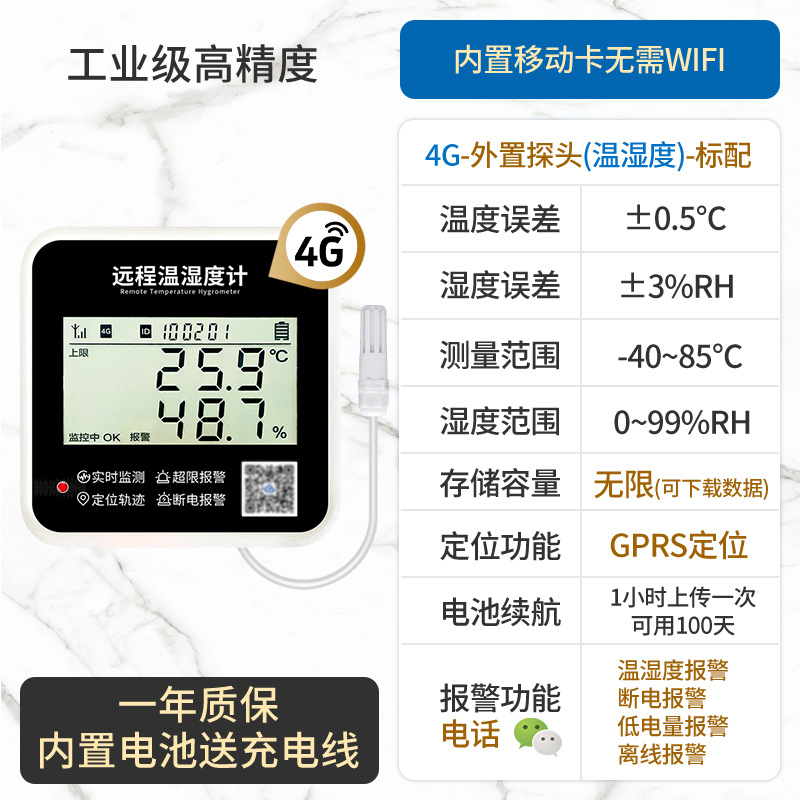 • [1 년 흐름 제공] 4G 온도 및 습도/내장 프로브