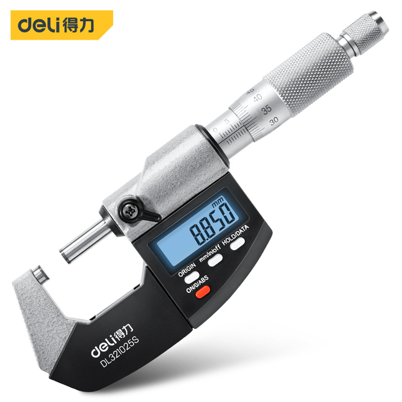 델리 디지털 디스플레이 외부 마이크로 미터 디지털 디스플레이 기계 독서 듀얼 목적 0-25/25-50mm 미터 인치 LCD 화면