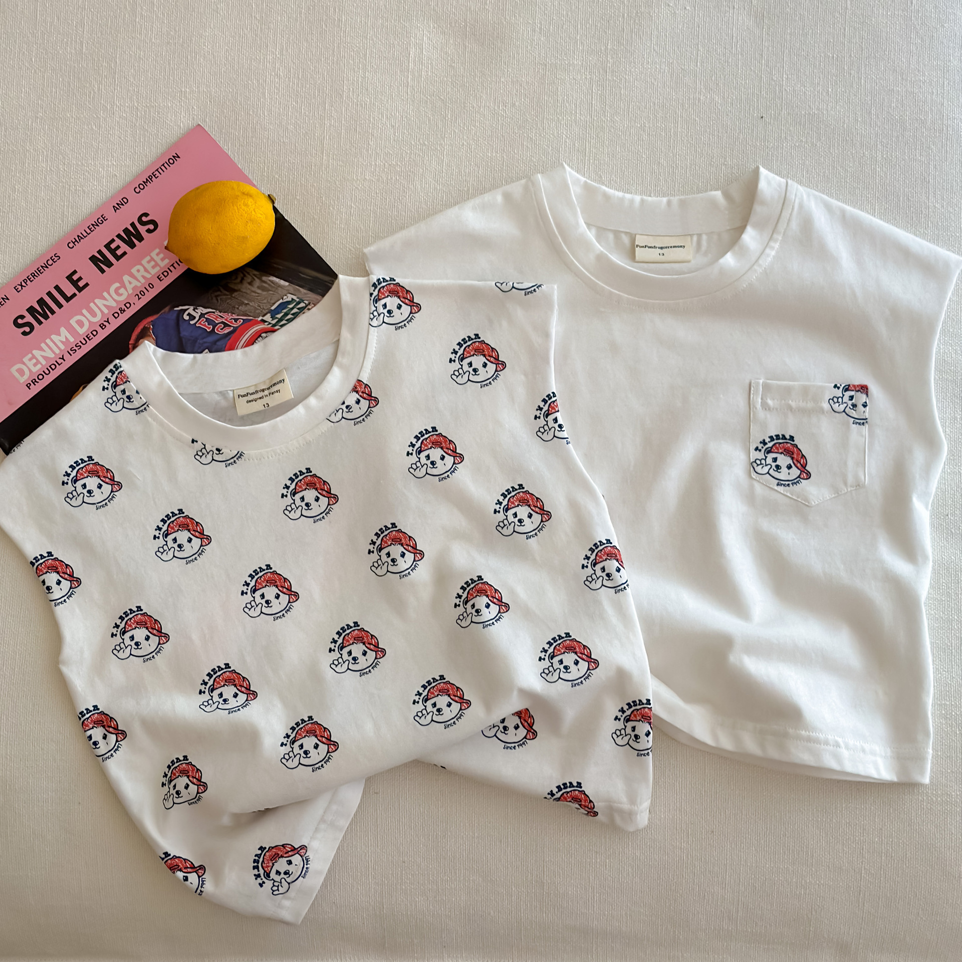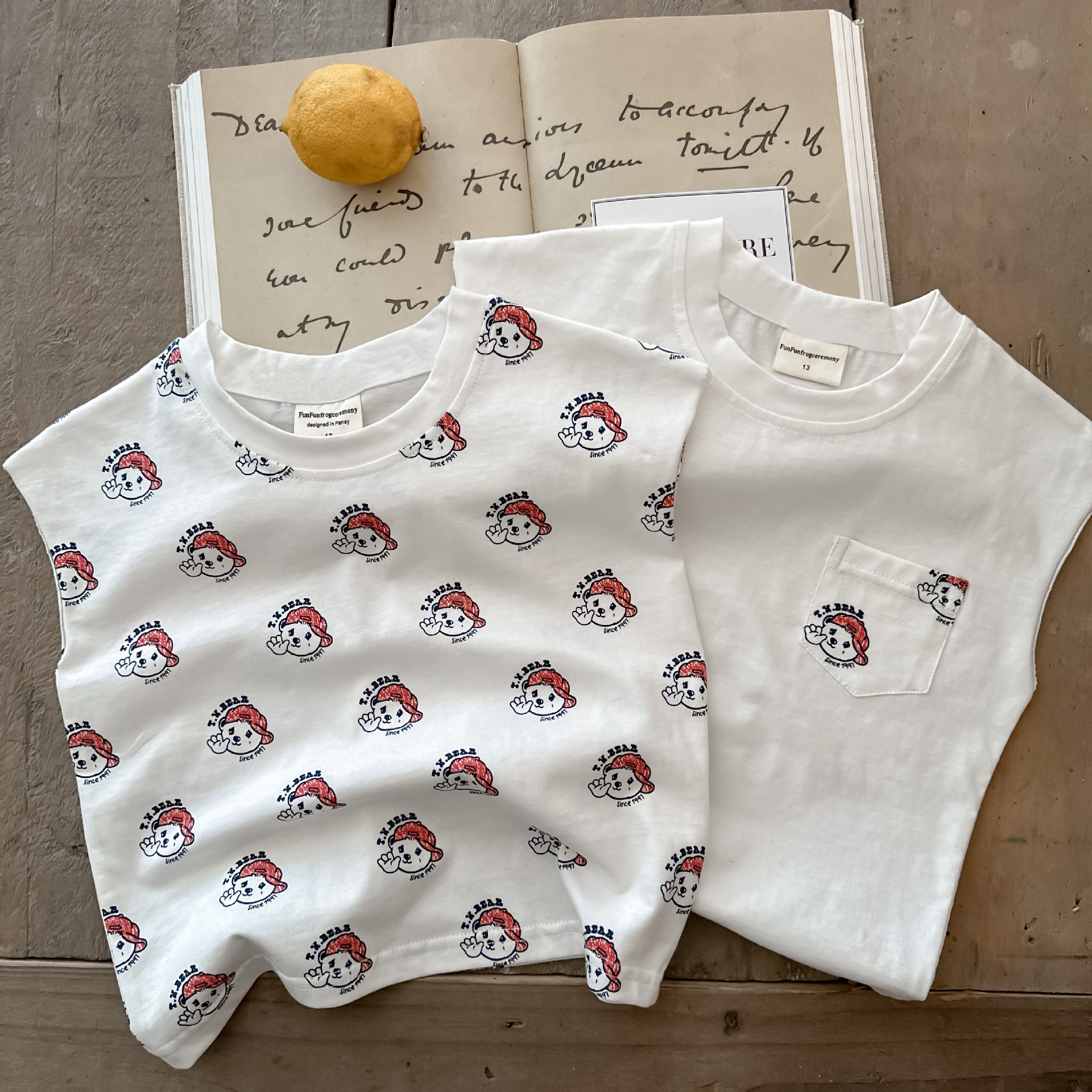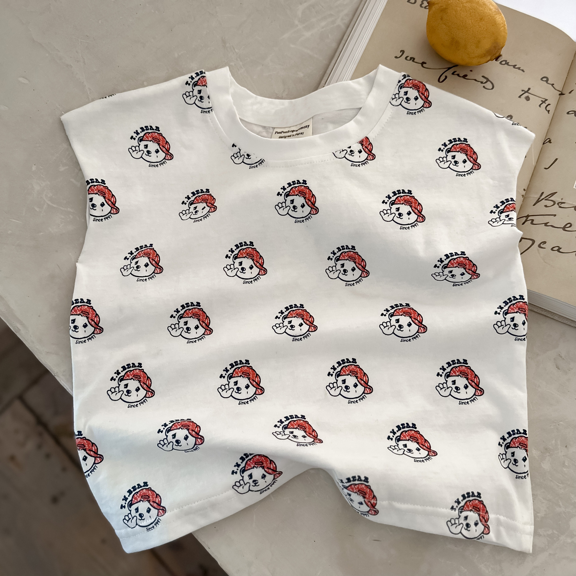 100 면 여름 조끼 2024 뉴 보이즈 웨이스트 코트 티셔츠 걸스 만화 전체 인쇄 아기 크루 넥 탑