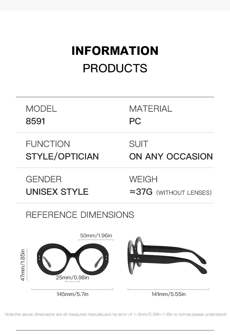 2024 새로운 라운드 프레임 투명 평면 거울 패션 국경 개성 트렌드 캐주얼 우아한 조커 도매스토어 가기