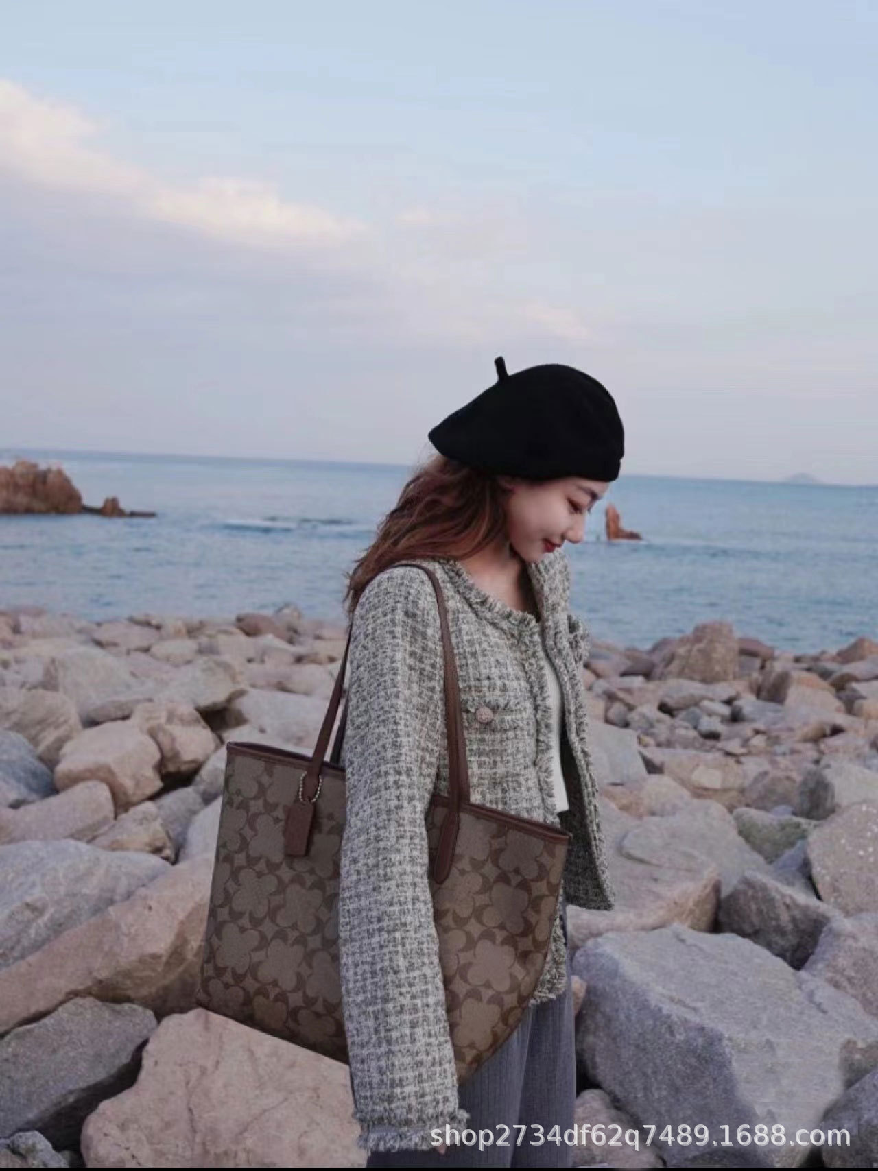 Baojiaojia City33 토트 백 대용량 엄마 가방 세련된 다용도 쇼핑백 클래식 프린트 핸드백