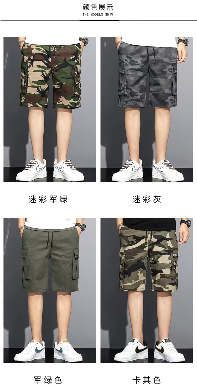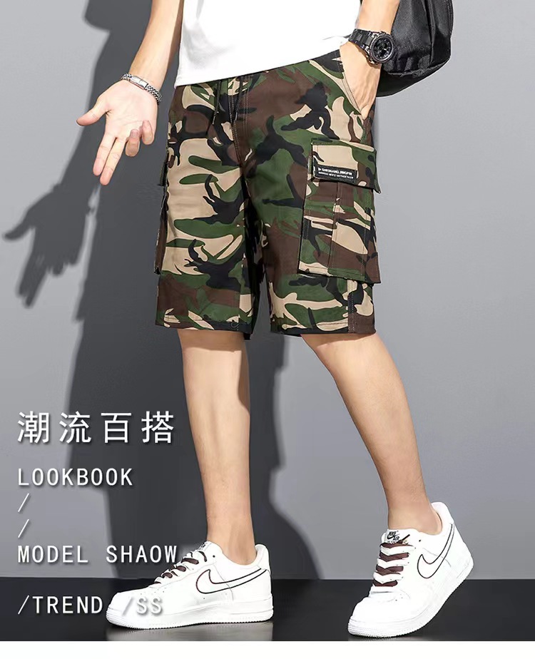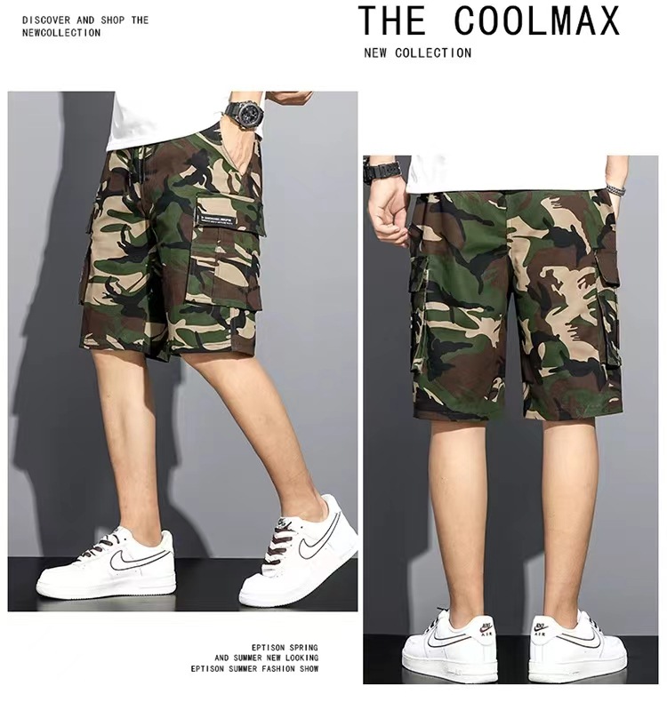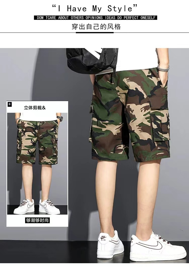 패셔너블한 여름 카모플라주 작업복 반바지 남성용 루즈핏 다중 포켓 대형 사이즈 중간 길이 바지 비치 팬츠 캐주얼스토어 가기