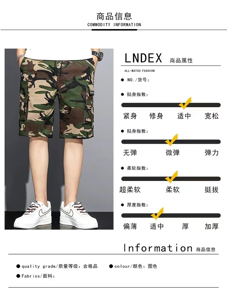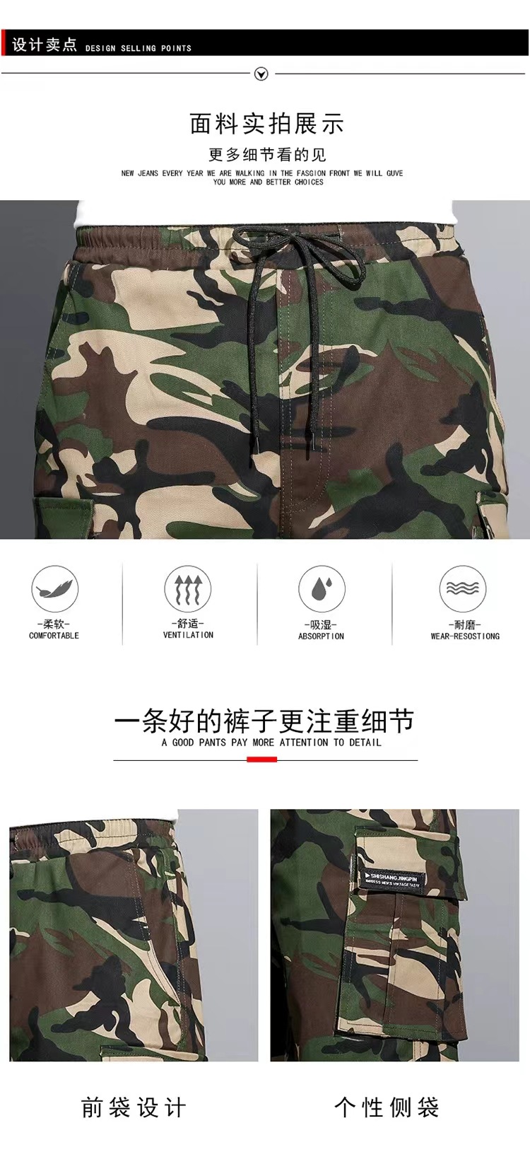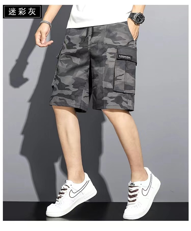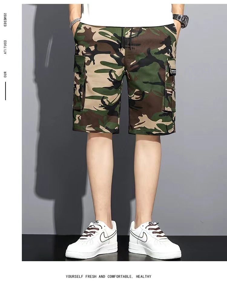 패셔너블한 여름 카모플라주 작업복 반바지 남성용 루즈핏 다중 포켓 대형 사이즈 중간 길이 바지 비치 팬츠 캐주얼스토어 가기
