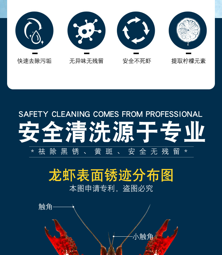 세척 새우 분말 상업용 식품 등급 세척 가재 분말 생물학적 녹 제거 효소 구연산 게 얼룩 세척 용 분말
