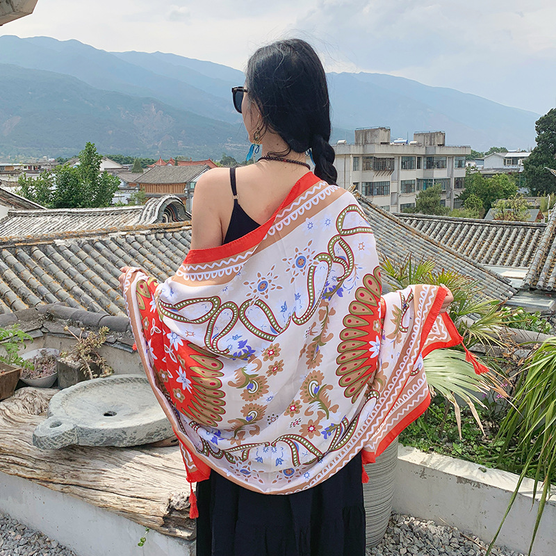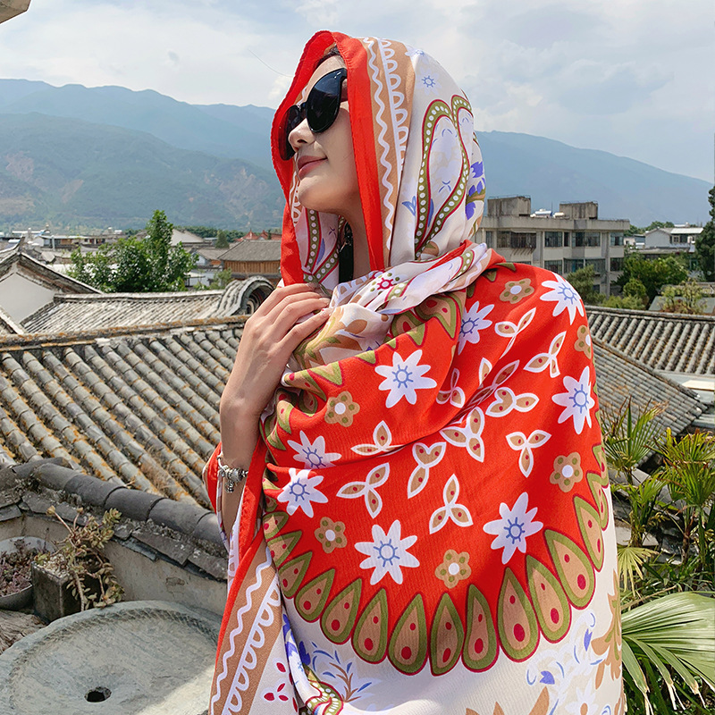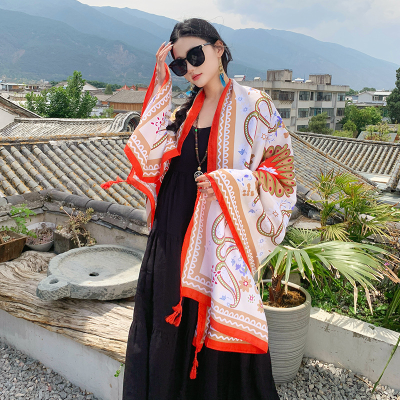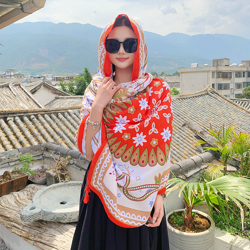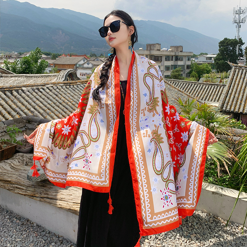 야외 개성 놀이 편안한 통기성 외부 착용 케이프 민족 대형 디스크 복고풍 꽃 풀오버 대형 목도리