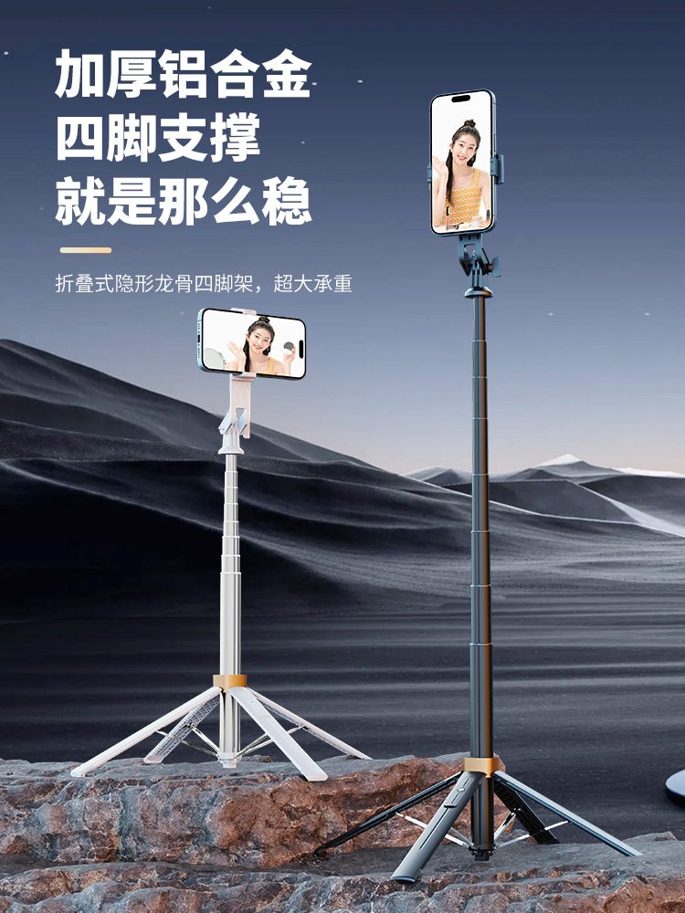 2024 폭발 휴대 전화 셀카 스틱 충전 블루투스 원격 제어 라이브 브래킷 안정제 4 개의 다리 지원을 여는 원 버튼