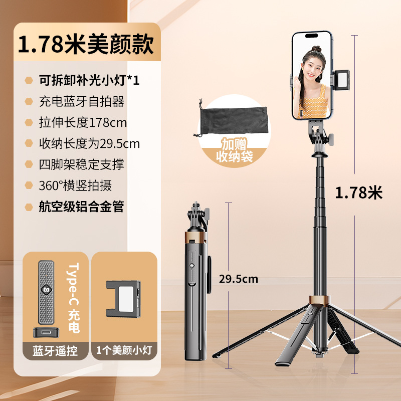 2024 폭발 휴대 전화 셀카 스틱 충전 블루투스 원격 제어 라이브 브래킷 안정제 4 개의 다리 지원을 여는 원 버튼스토어 가기