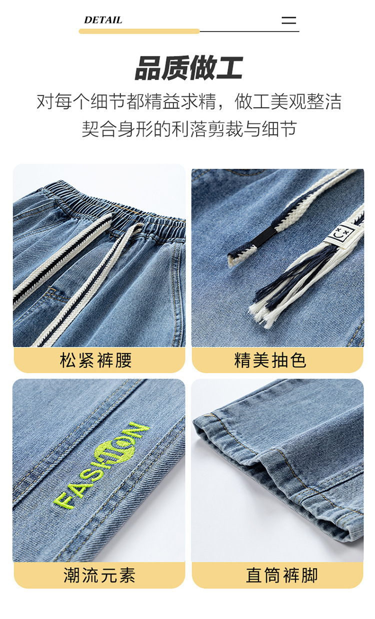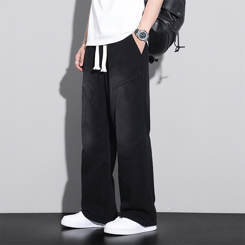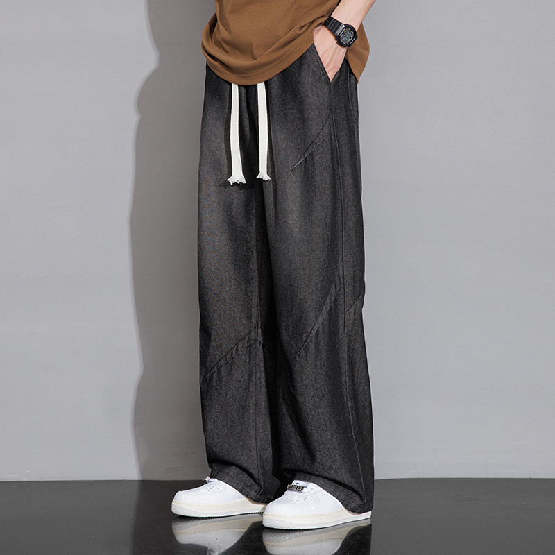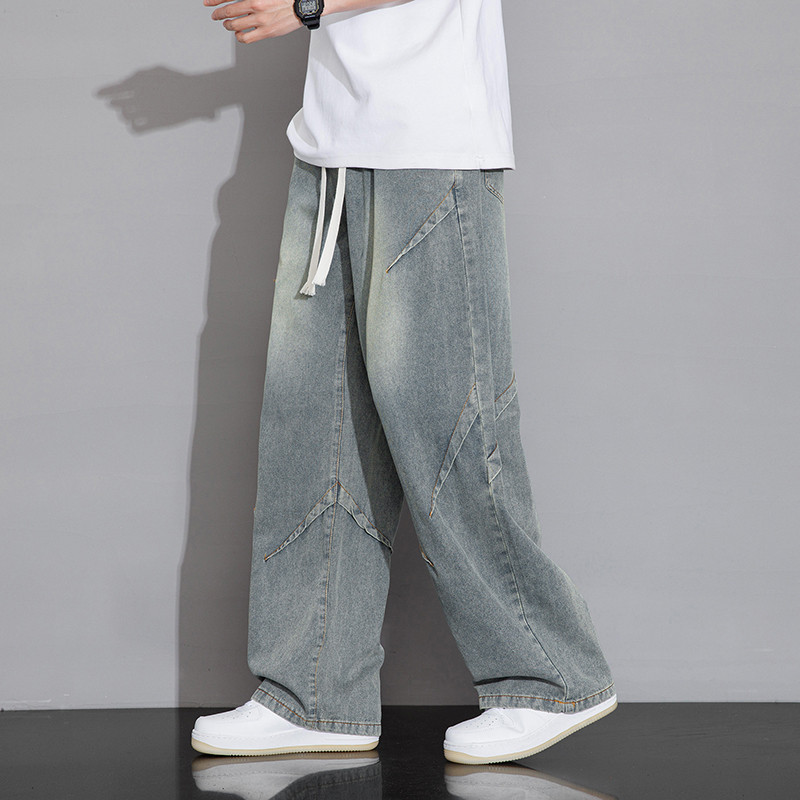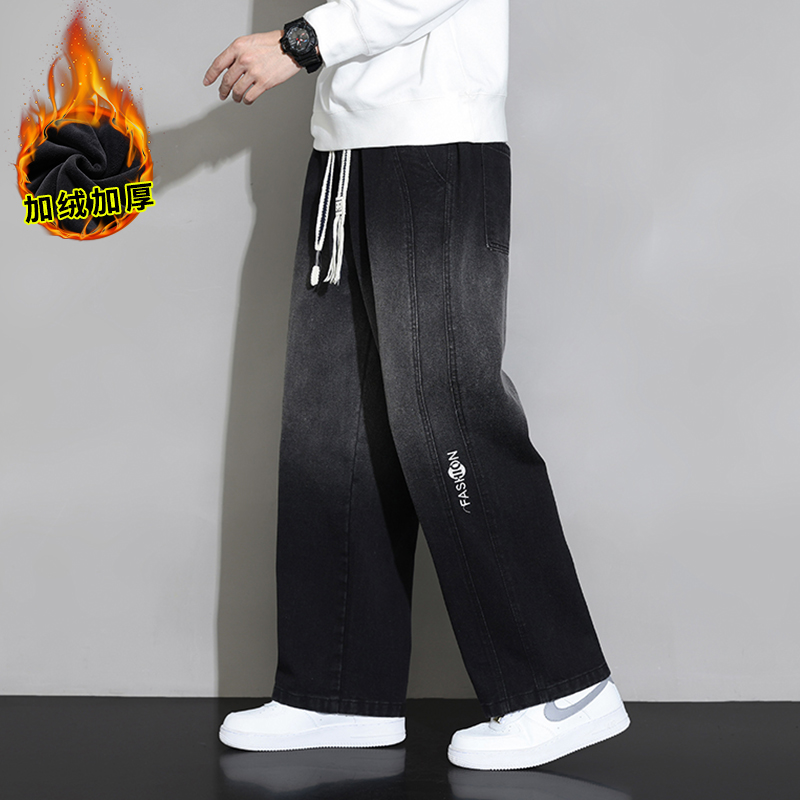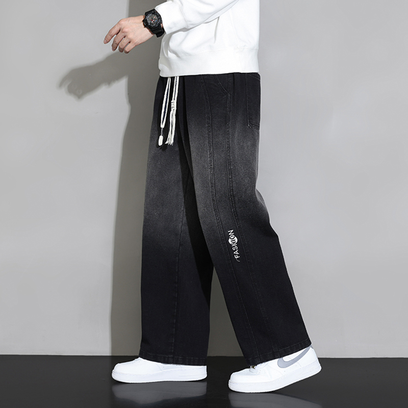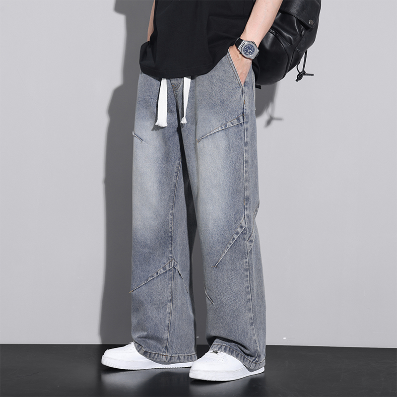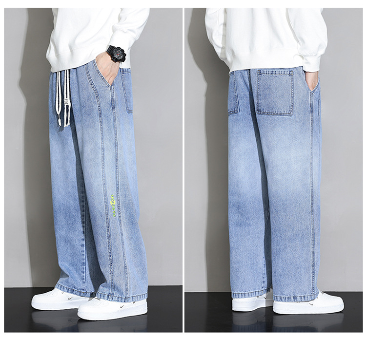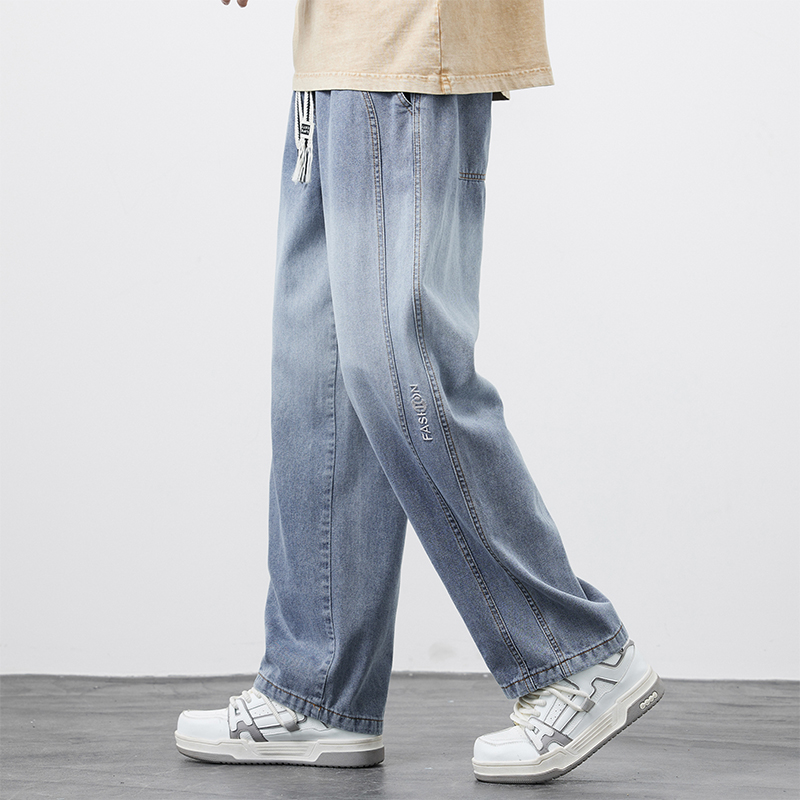 플러스 사이즈 스트레이트 데님 바지 남자 여름 미국 스타일 하이 스트리트 아이스 실크 느슨한 플러스 큰 뚱뚱한 넓은 다리 바지스토어 가기