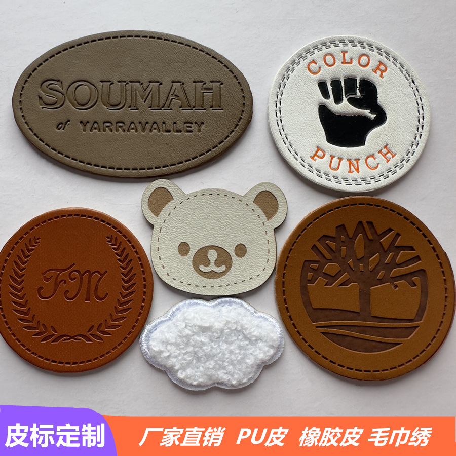 가죽 라벨 PU 가죽 가방 모자 라벨 청바지 가죽 브랜드 PVC 소프트 접착제 라벨 수건 자수 의류 액세서리 도매스토어 가기