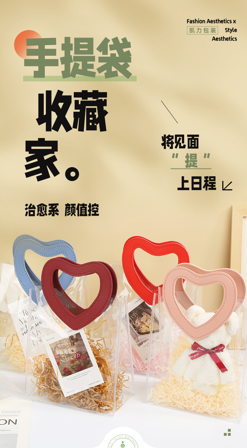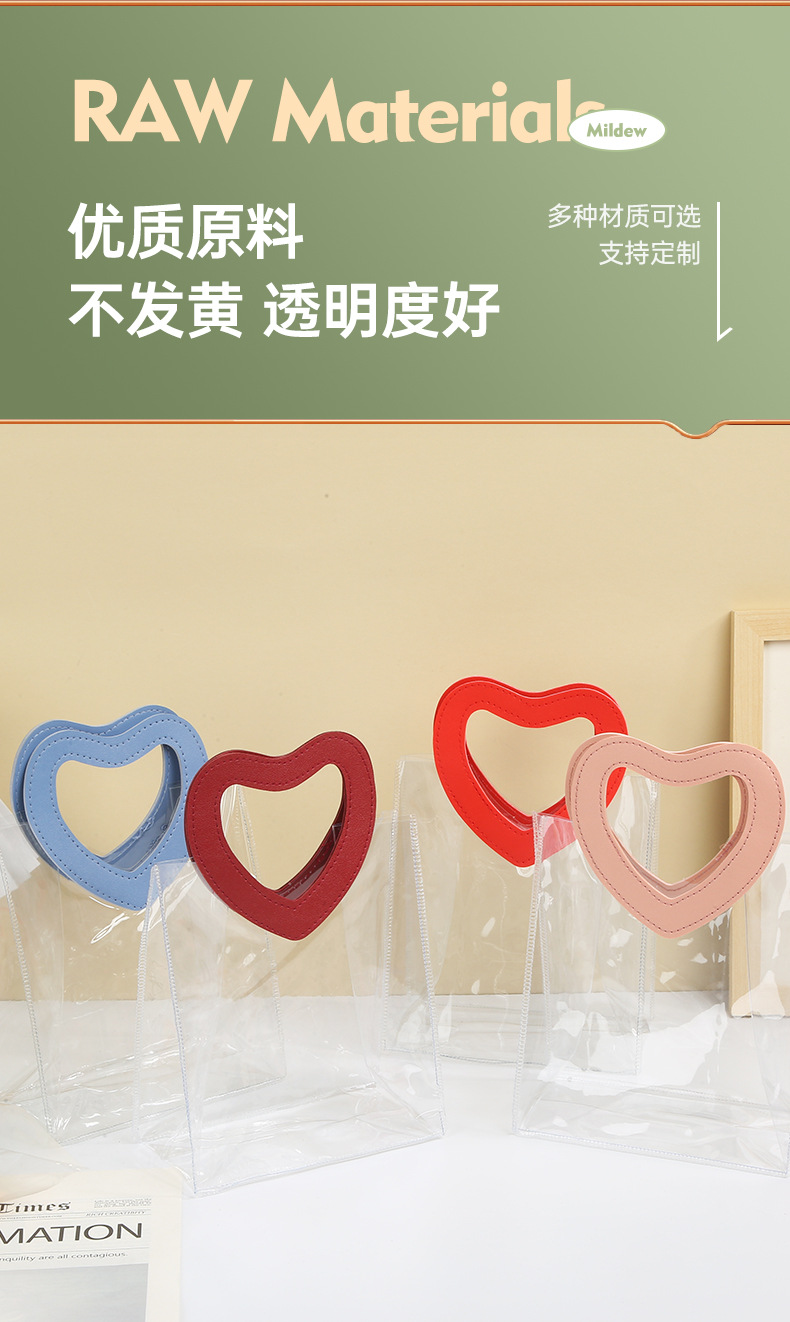 투명 PVC 핸드백 하트 모양의 스승의 날 선물 포장 가방 레이저 웨딩 캔디 선물 가방 맞춤 제작스토어 가기