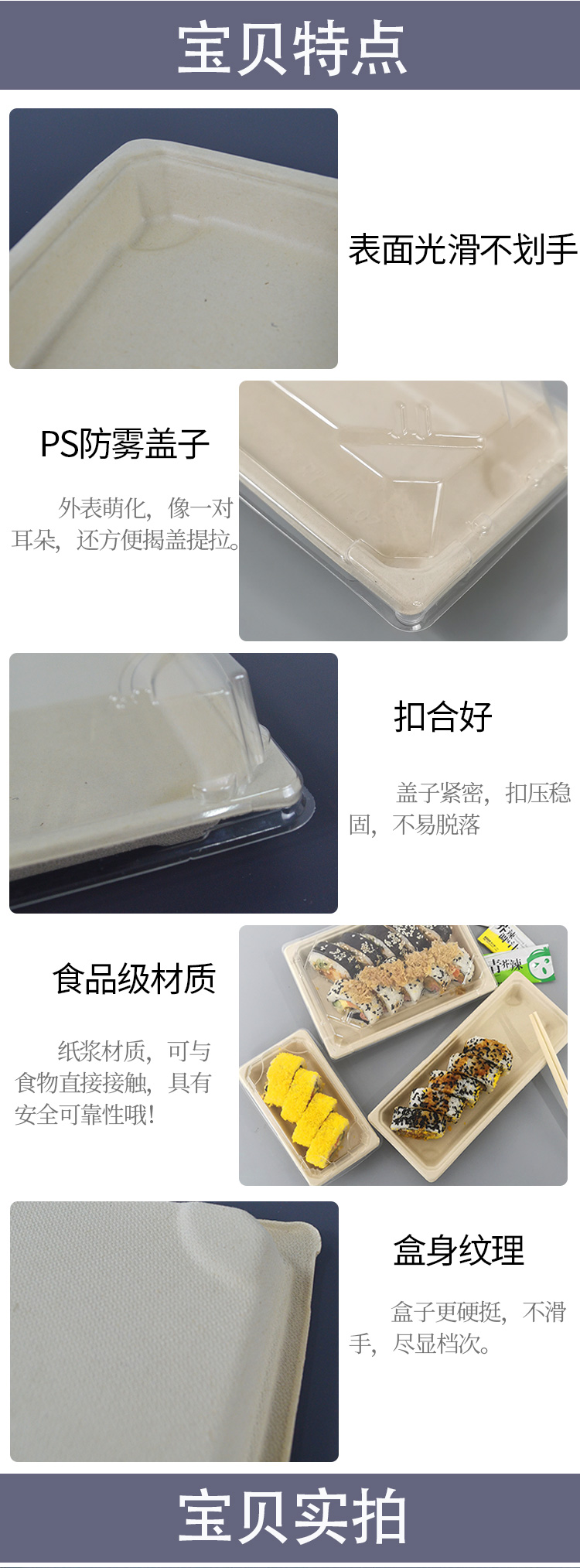 스시 박스 상업용 일회용 분해 펄프 일본식 도시락 가벼운 음식 도시락 테이크 아웃