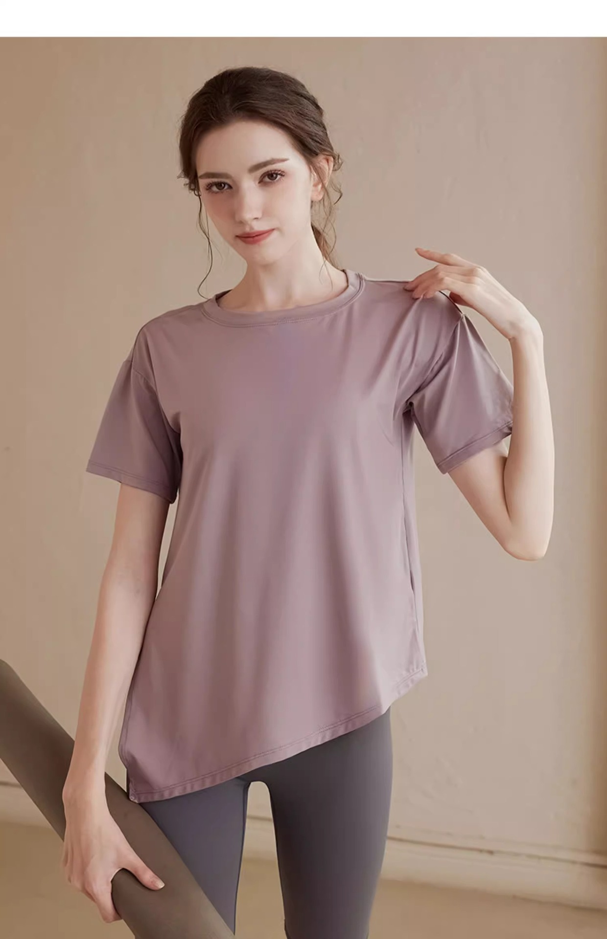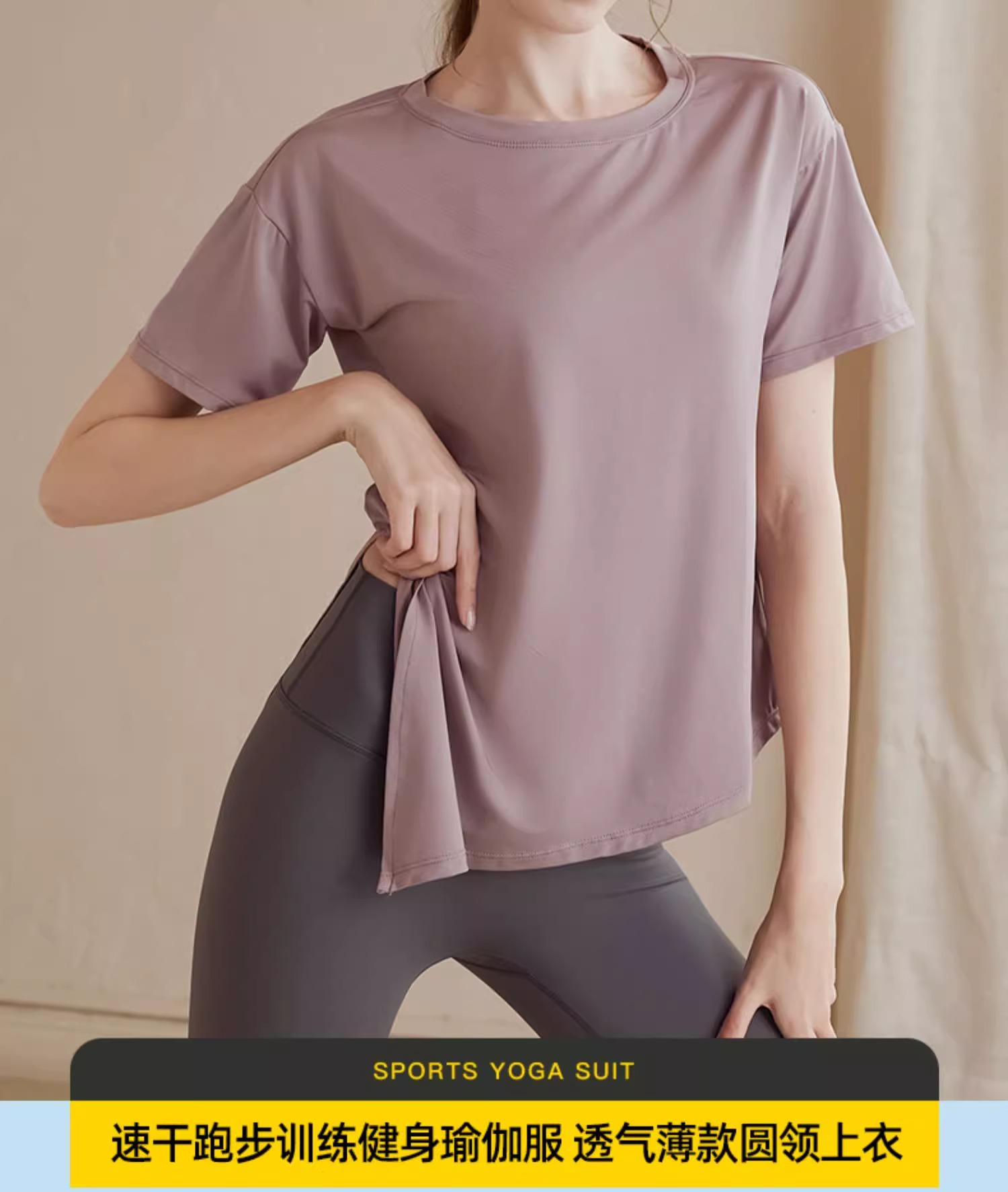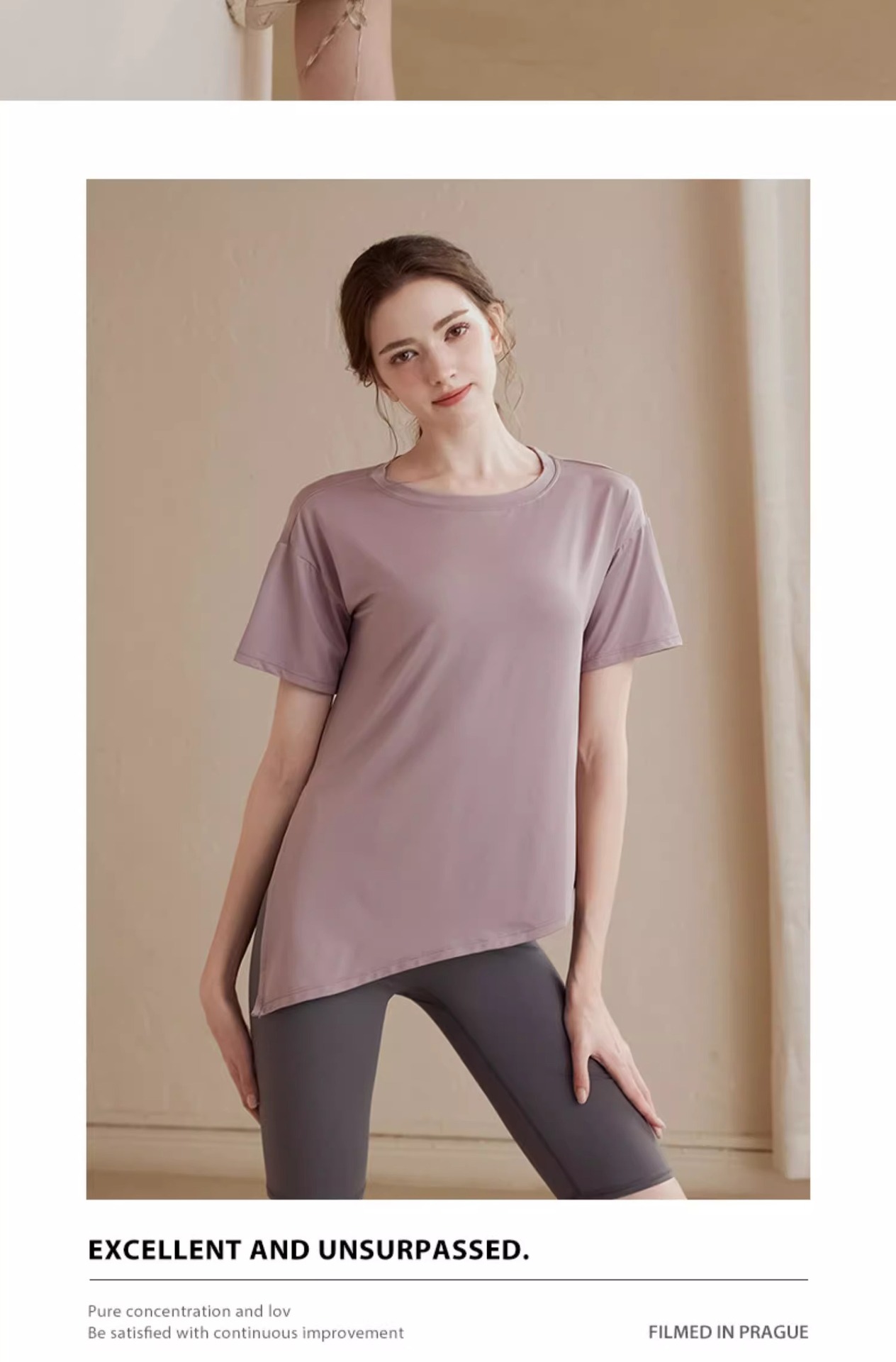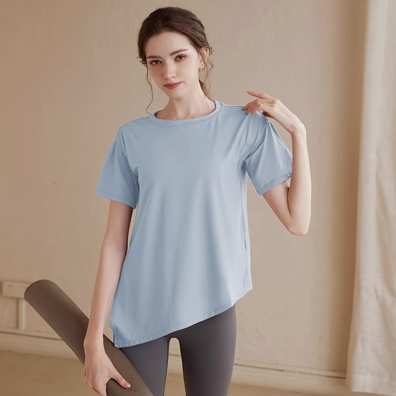 느슨한 슬림핏 요가 블라우스 여성 스포츠 탑 달리기 빠른 건조 반팔 티셔츠 통기성 여름 캐주얼 피트니스 착용