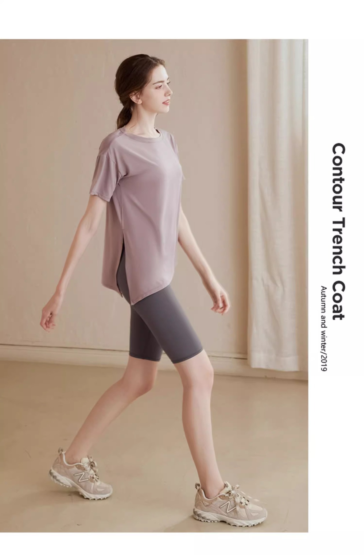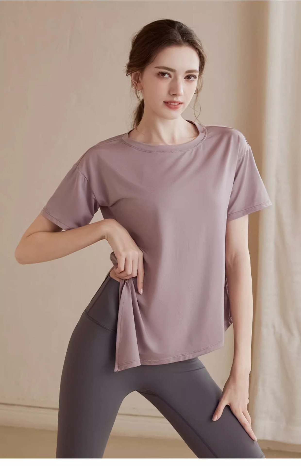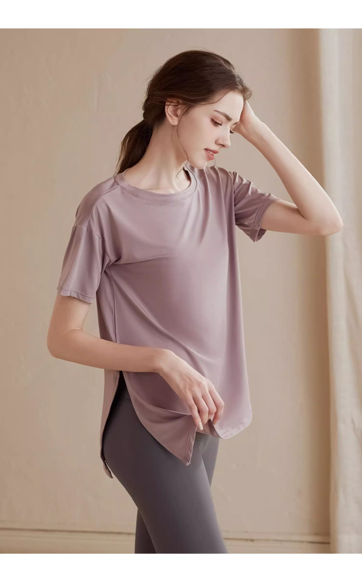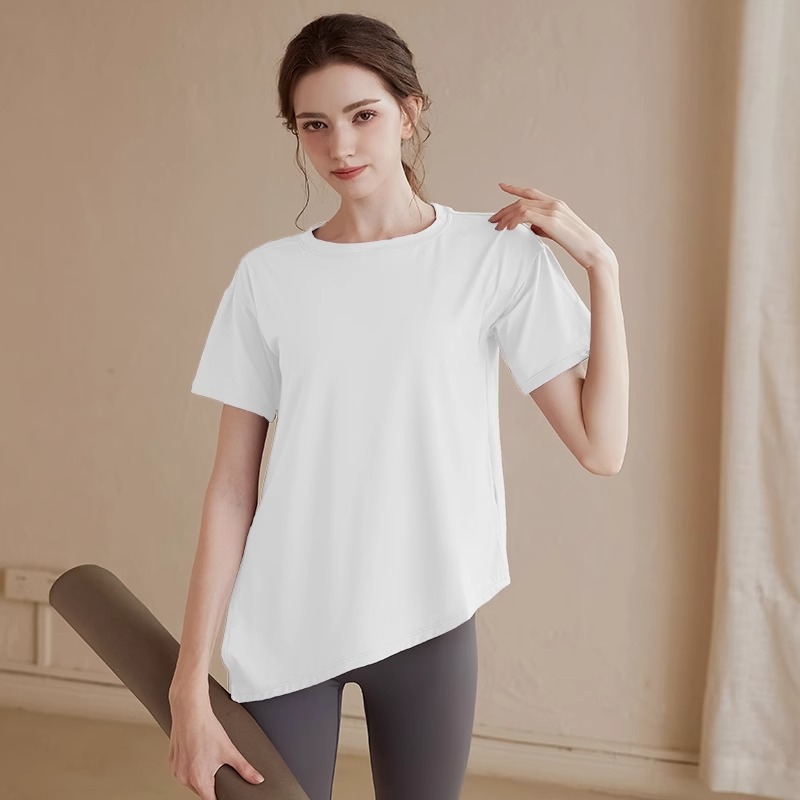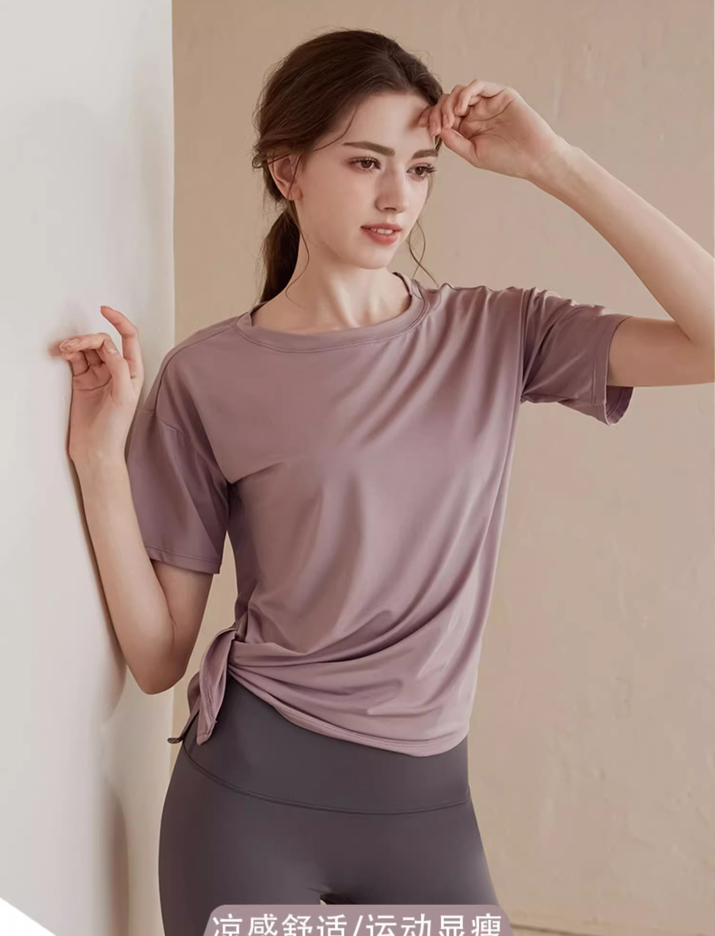 느슨한 슬림핏 요가 블라우스 여성 스포츠 탑 달리기 빠른 건조 반팔 티셔츠 통기성 여름 캐주얼 피트니스 착용