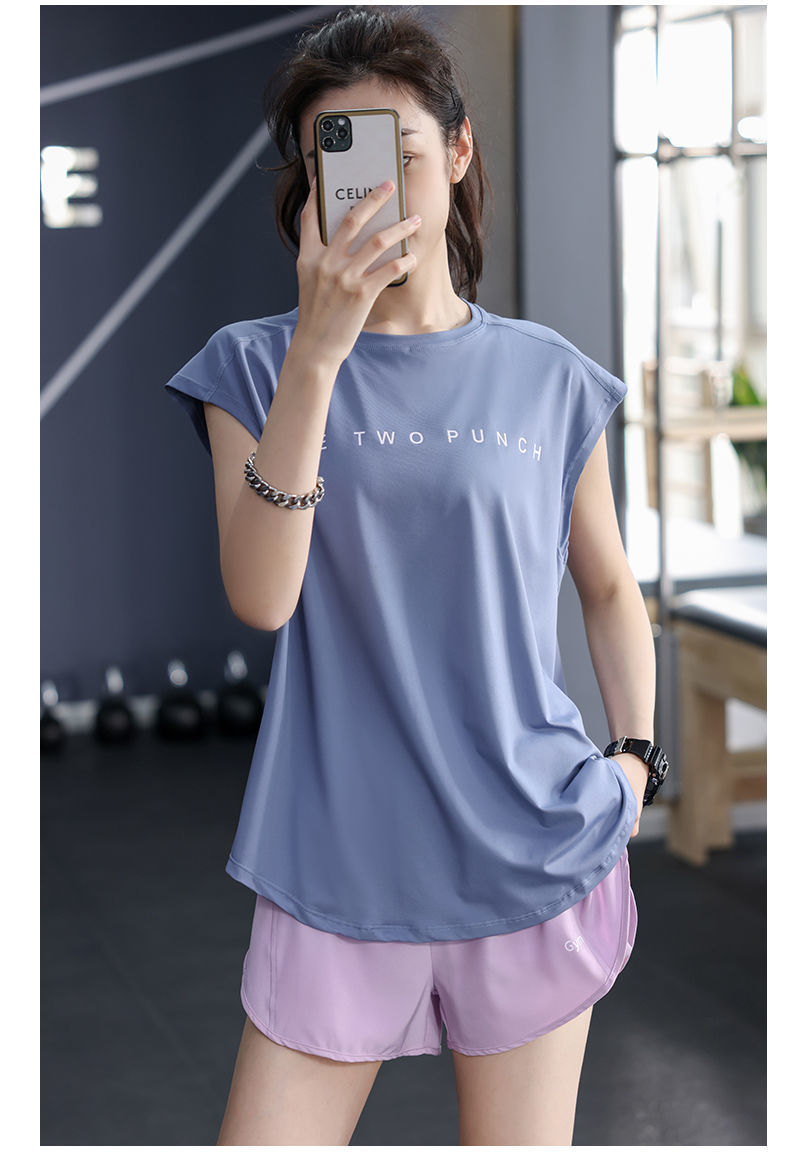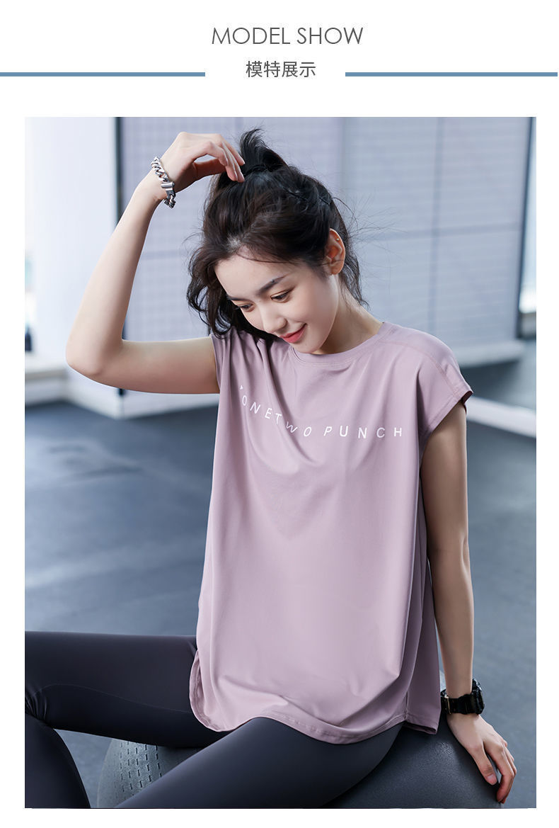 요가 옷 민소매 최고 여성 여름 느슨한 슬리밍 통기성 전문 교육 티셔츠 빠른 건조 외부 착용 캐주얼 피트니스 옷스토어 가기