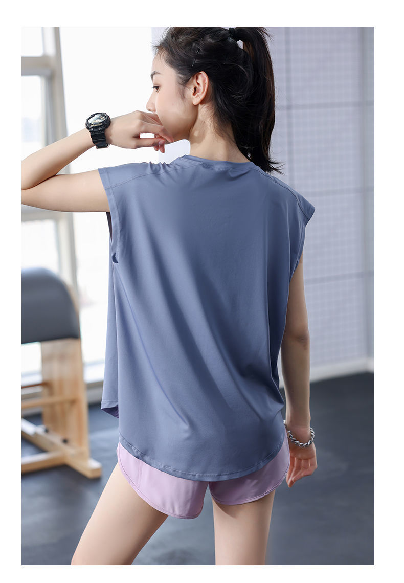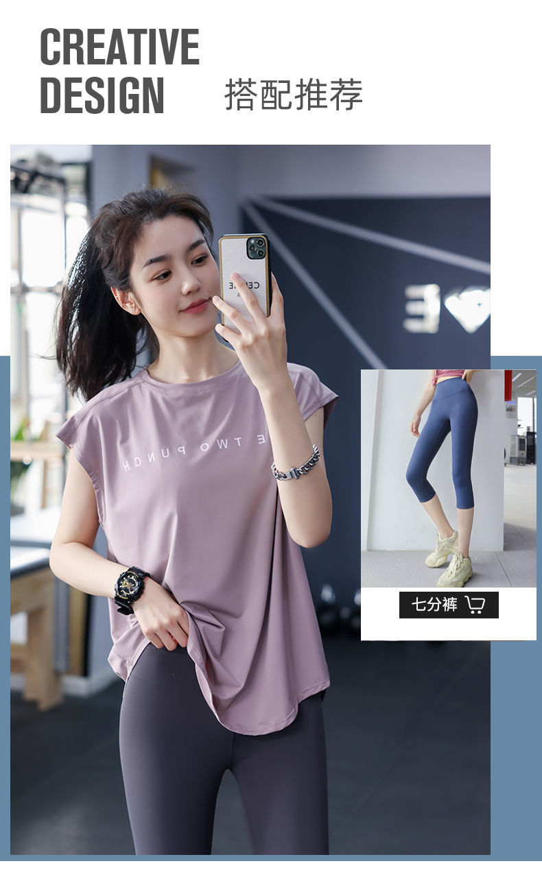 요가 옷 민소매 최고 여성 여름 느슨한 슬리밍 통기성 전문 교육 티셔츠 빠른 건조 외부 착용 캐주얼 피트니스 옷