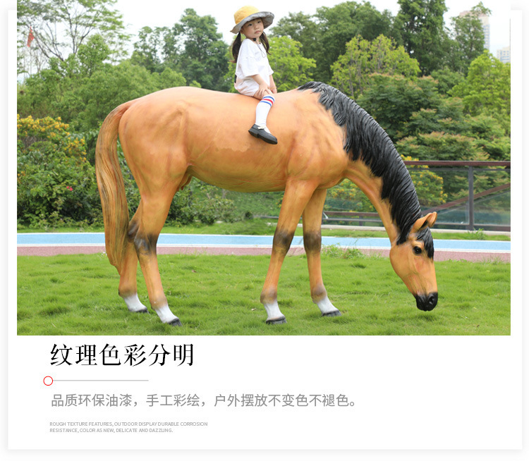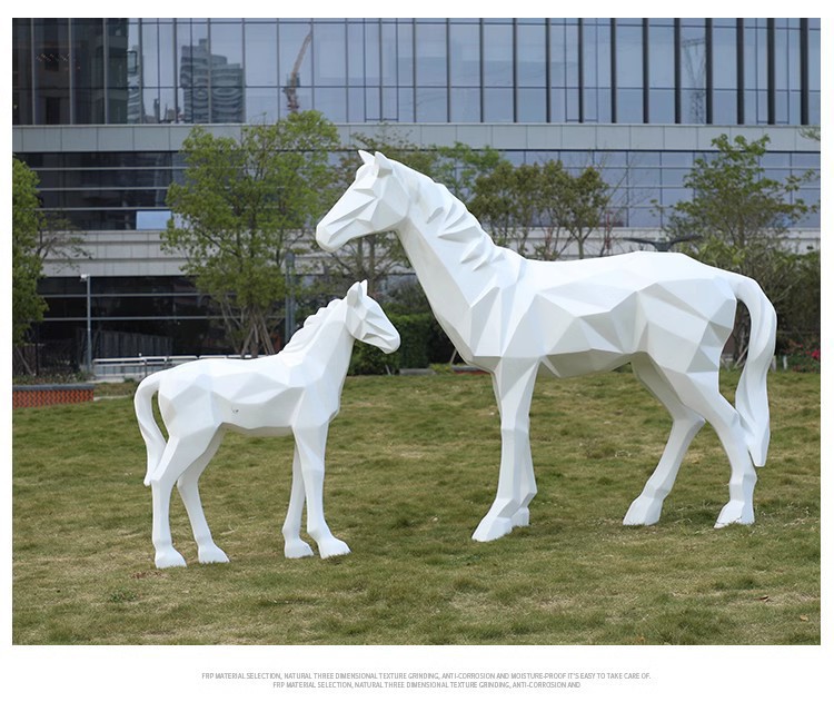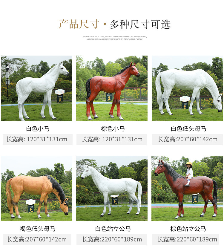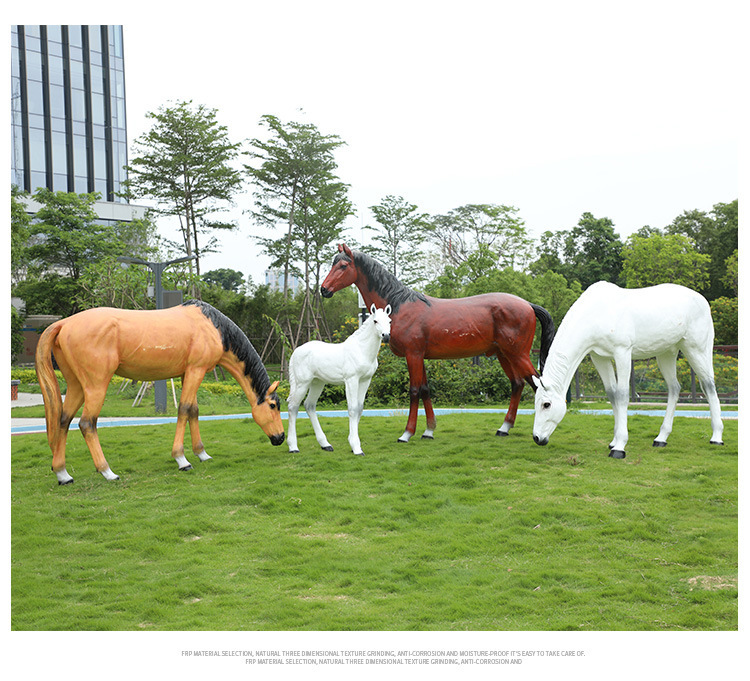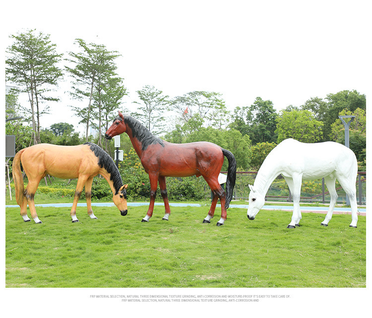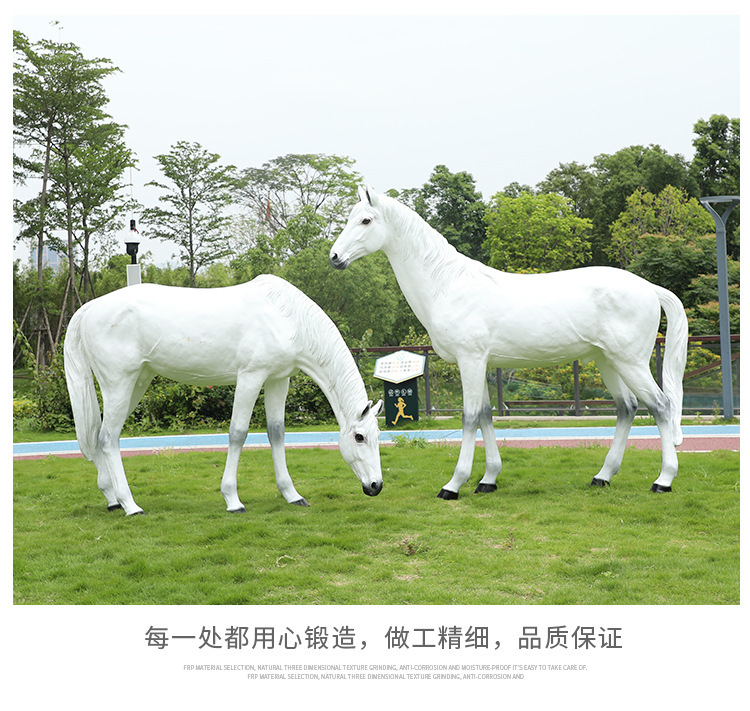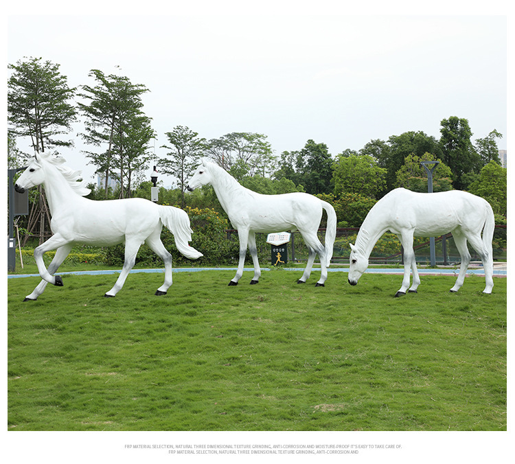 시뮬레이션 흰 말 조각 유리 섬유 강화 플라스틱 큰 동물 모델 경치 좋은 지역 공원 숲 풍경 야외 잔디 장식 장식품스토어 가기