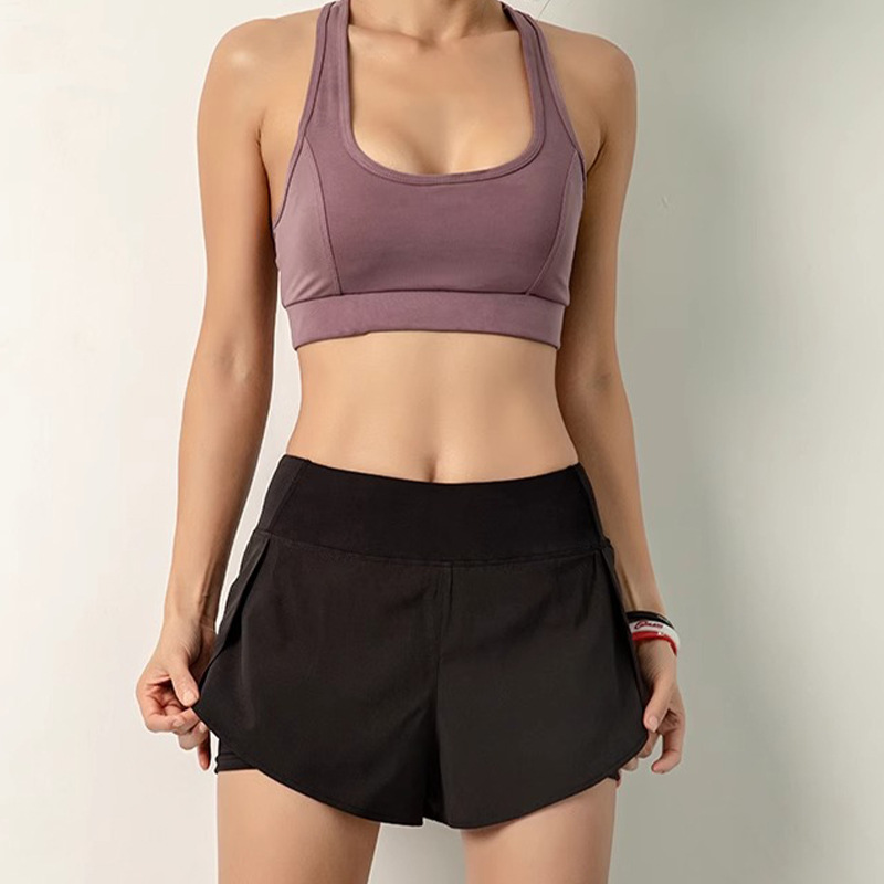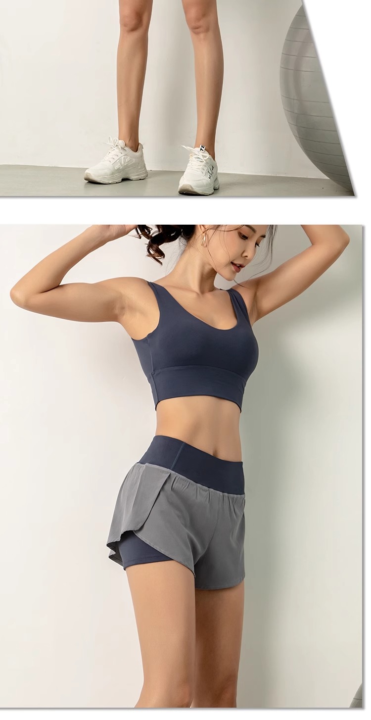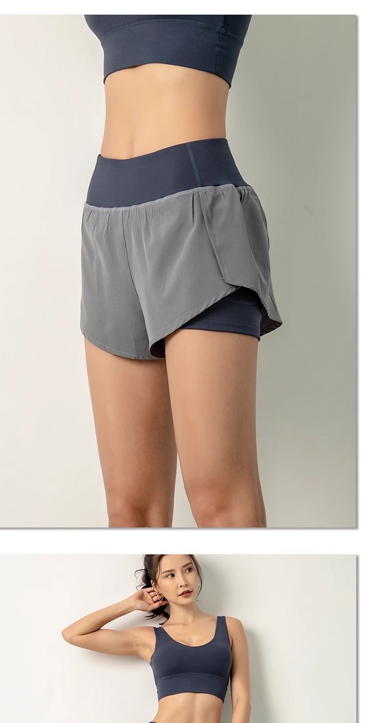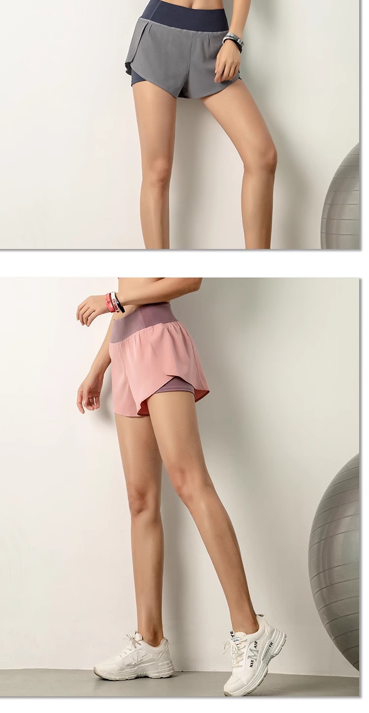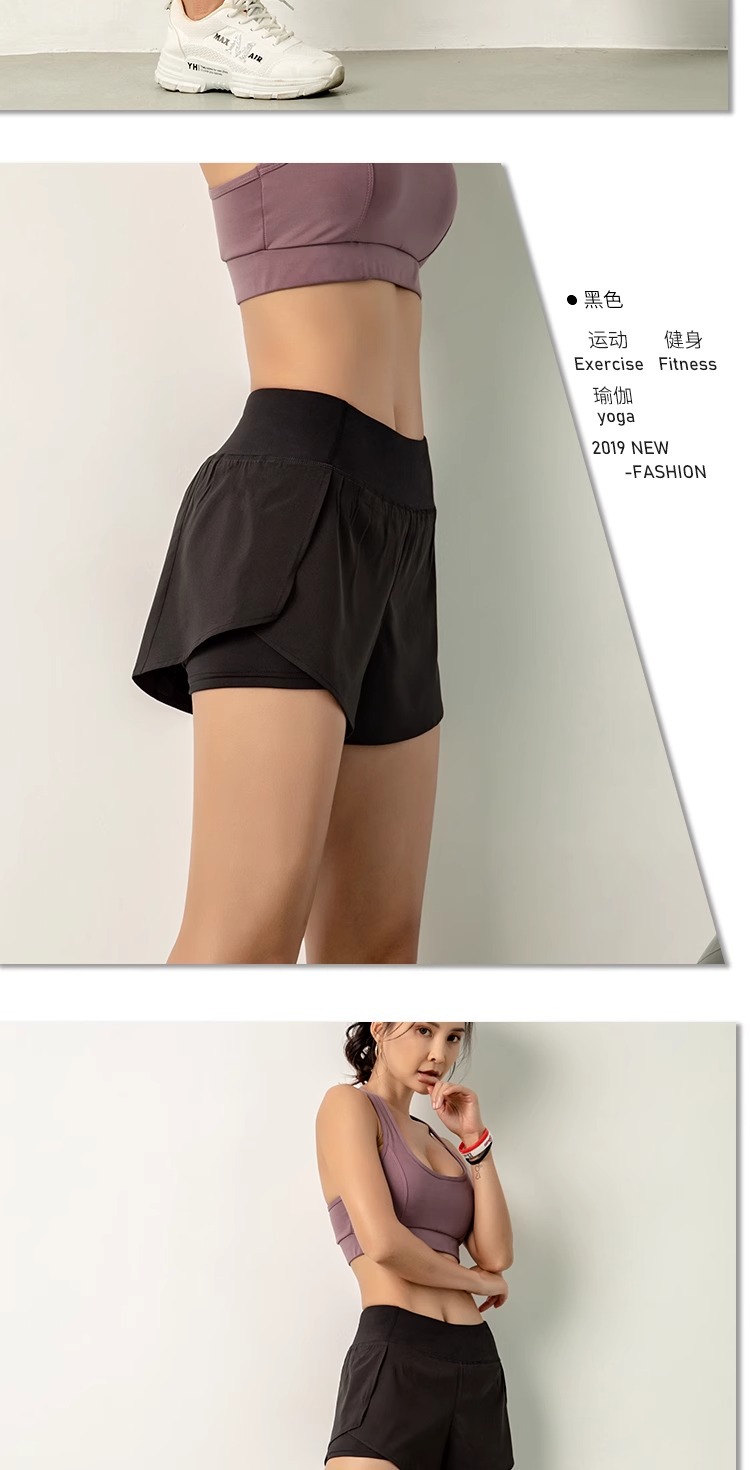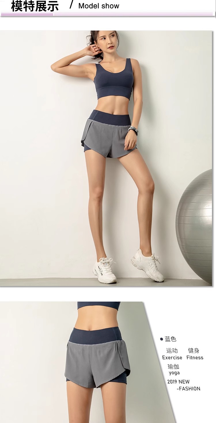 요가 스포츠 반바지 여성 여름 안티 워킹 퀵 드라이 호흡 가능한 외주 가짜 2 피스 러닝 퀵 드라이 피트니스 3 피스 바지