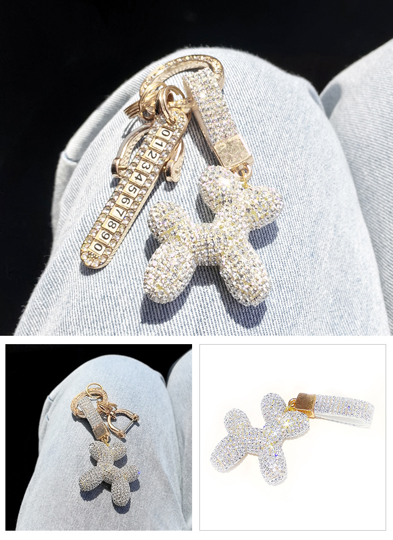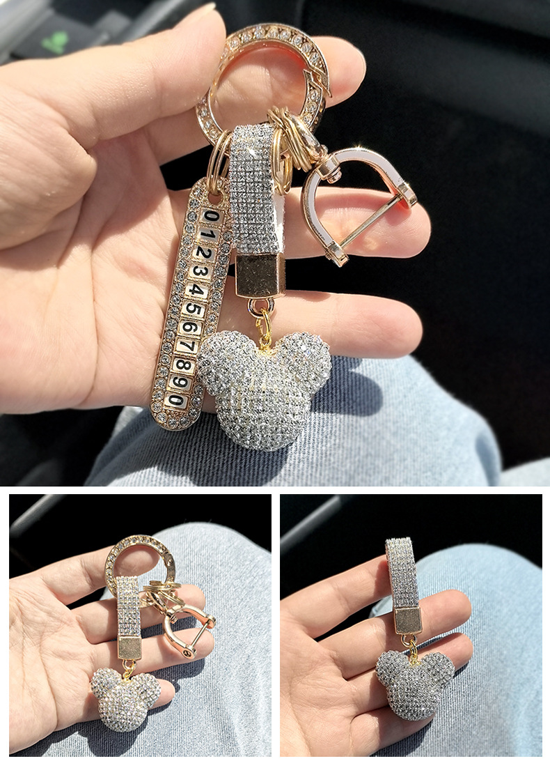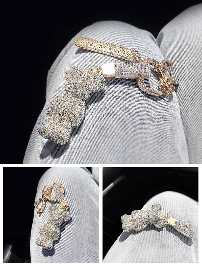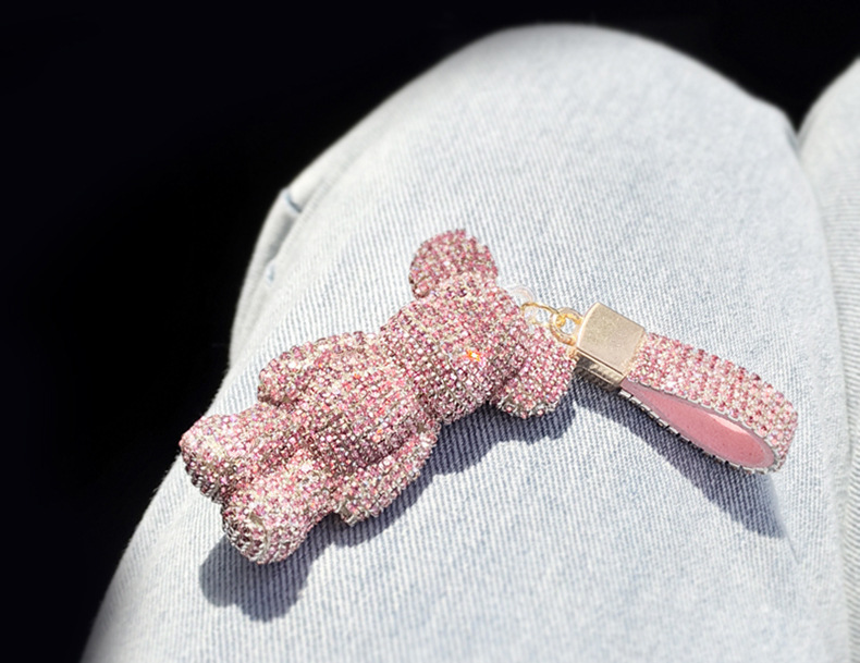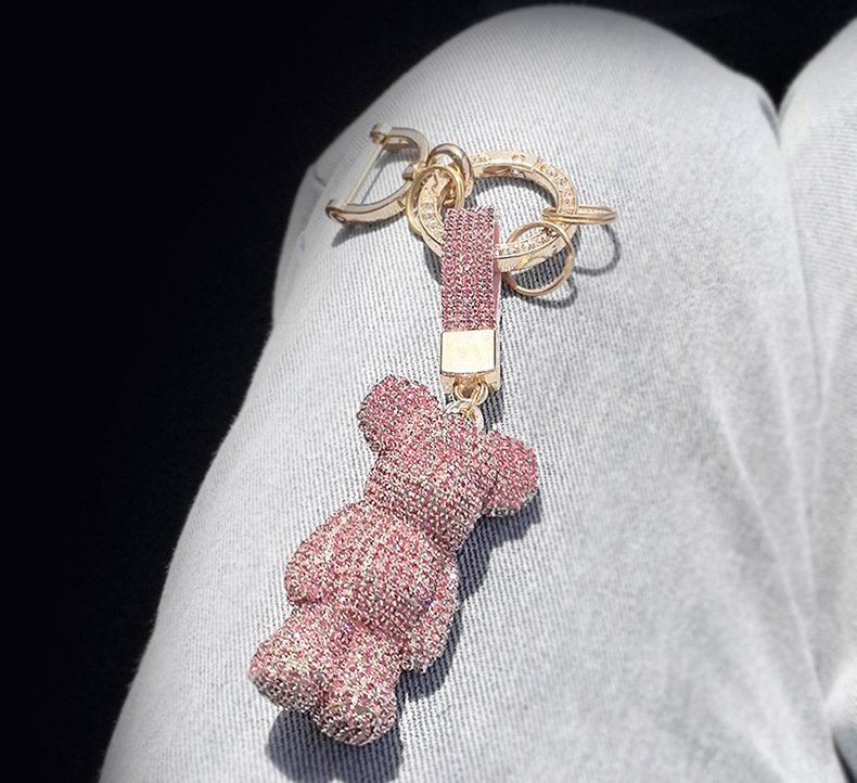 가벼운 분말 다이아몬드 만화 폭력적인 곰 자동차 키 체인 펜던트 펜던트 액세서리 장식 한국 입체 절묘한 인형스토어 가기