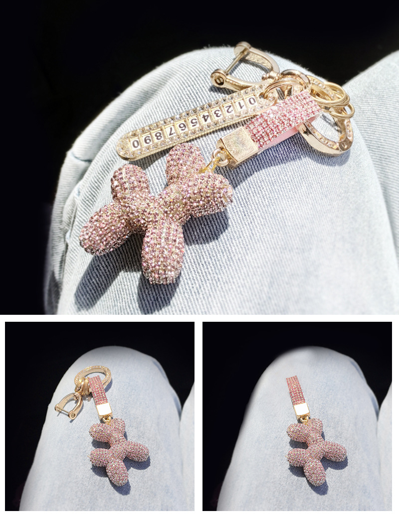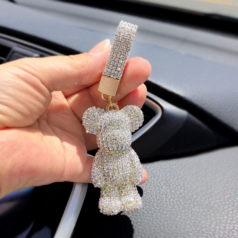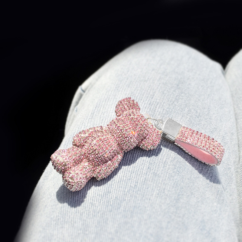 가벼운 분말 다이아몬드 만화 폭력적인 곰 자동차 키 체인 펜던트 펜던트 액세서리 장식 한국 입체 절묘한 인형