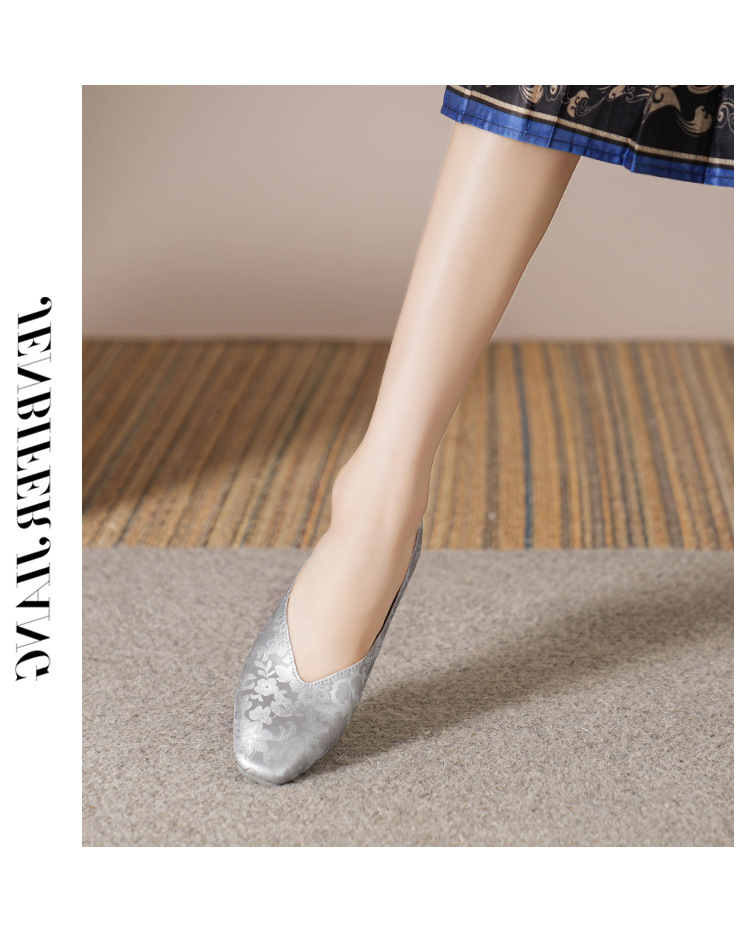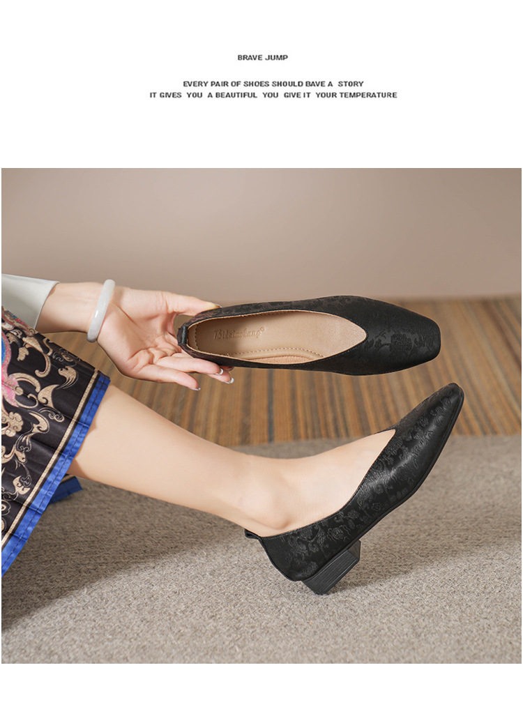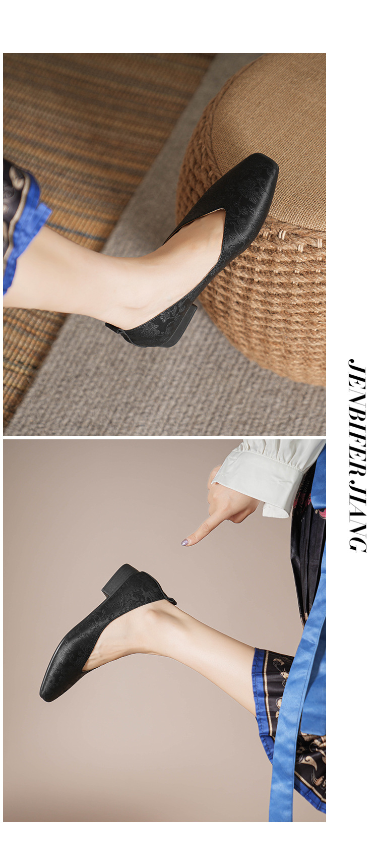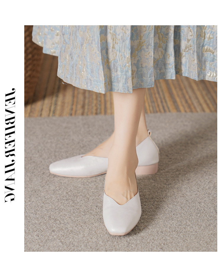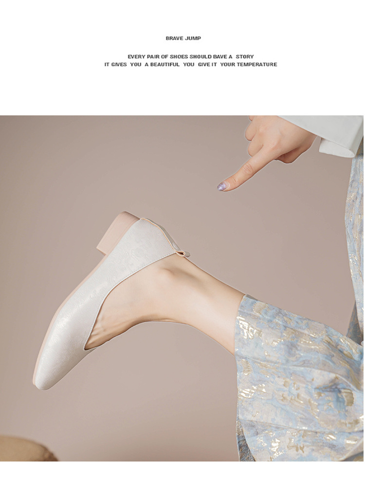 여성을위한 얕은 입 신발 2023 봄과 여름 새로운 복고풍 버클 로우 힐 문학적 인 스퀘어 토 부드러운 가죽 메리 제인 신발스토어 가기