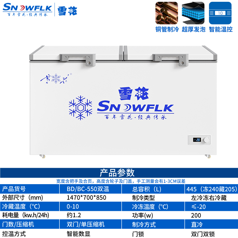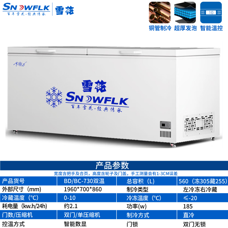 냉장고 상업용 냉동 대용량 냉동 냉동 이중 온도 냉동고 이중 사용 소형 냉장고 구리 튜브 냉동고