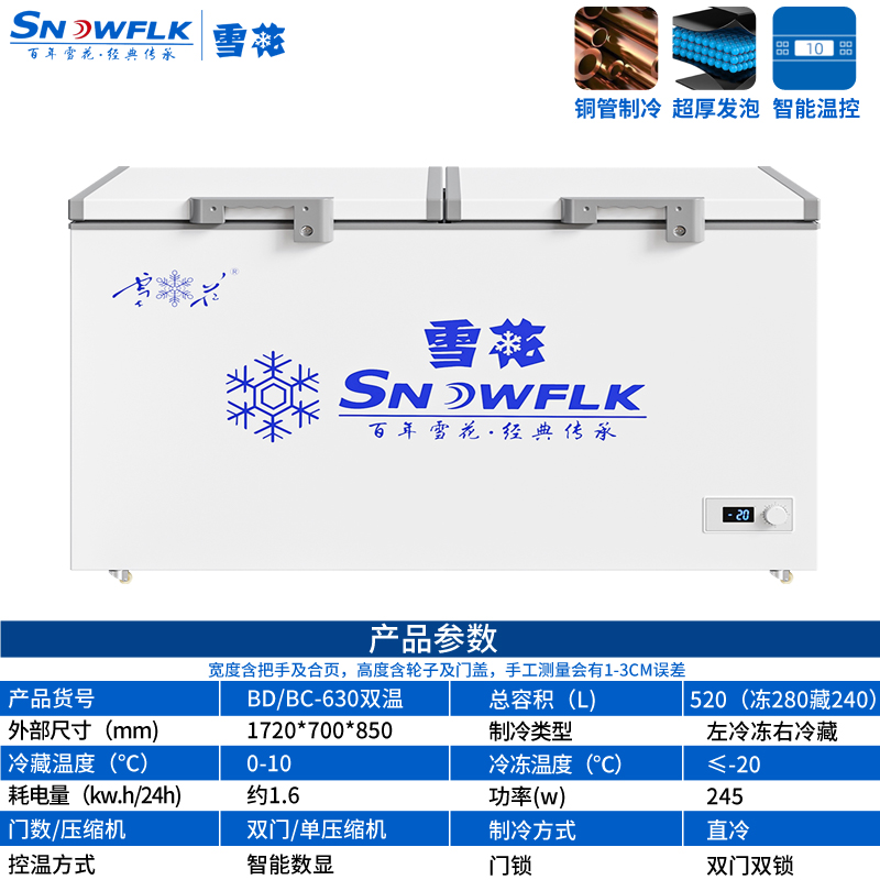 냉장고 상업용 냉동 대용량 냉동 냉동 이중 온도 냉동고 이중 사용 소형 냉장고 구리 튜브 냉동고스토어 가기