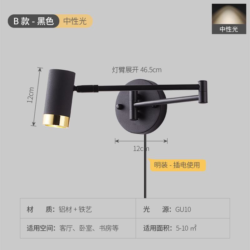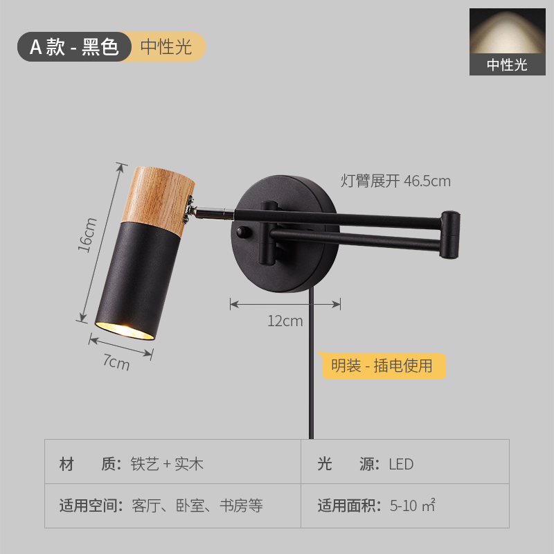 북유럽 침실 로커 벽 램프 일본식 거실 창조적 인 망원경 긴 막대 긴 팔 접이식 침실 벽 독서 벽 램프스토어 가기