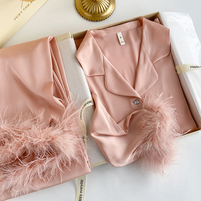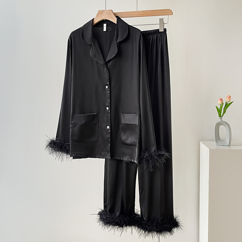 새로운 스타일의 여성용 잠옷, 아이스 실크 긴팔 긴바지 투피스 세트, 얇은 홈웨어 세트, 시원하고 편안하며 캐주얼한