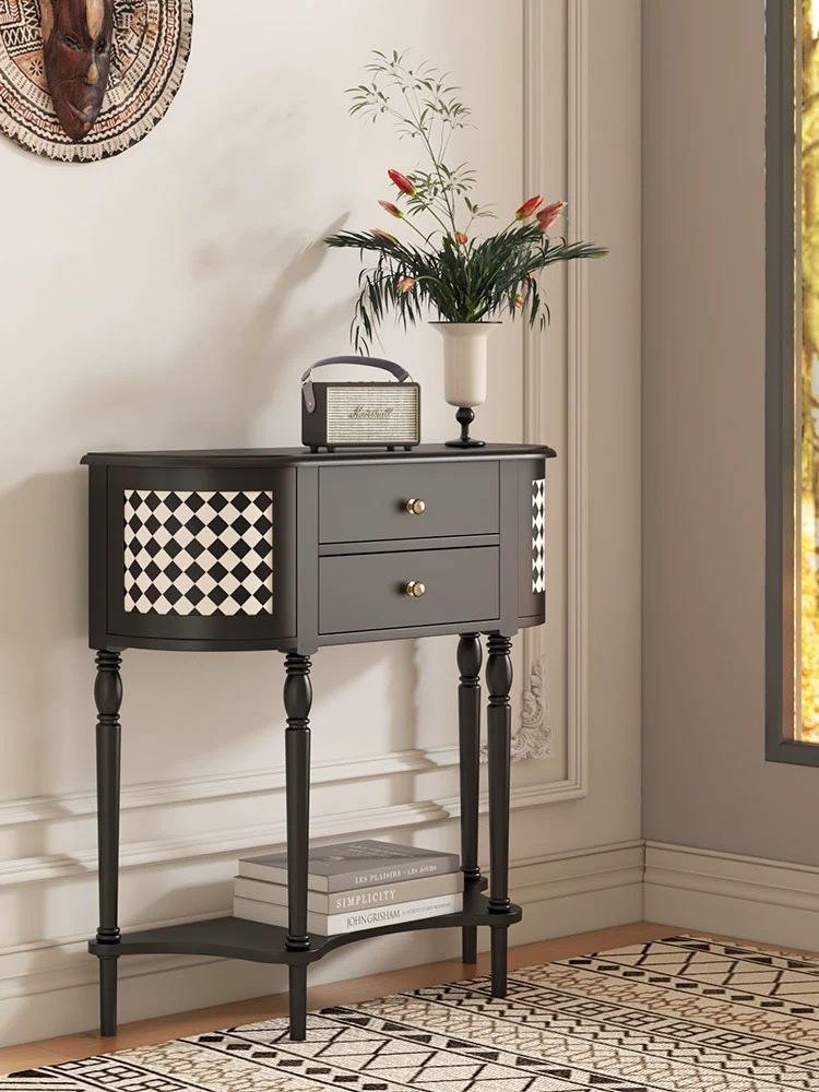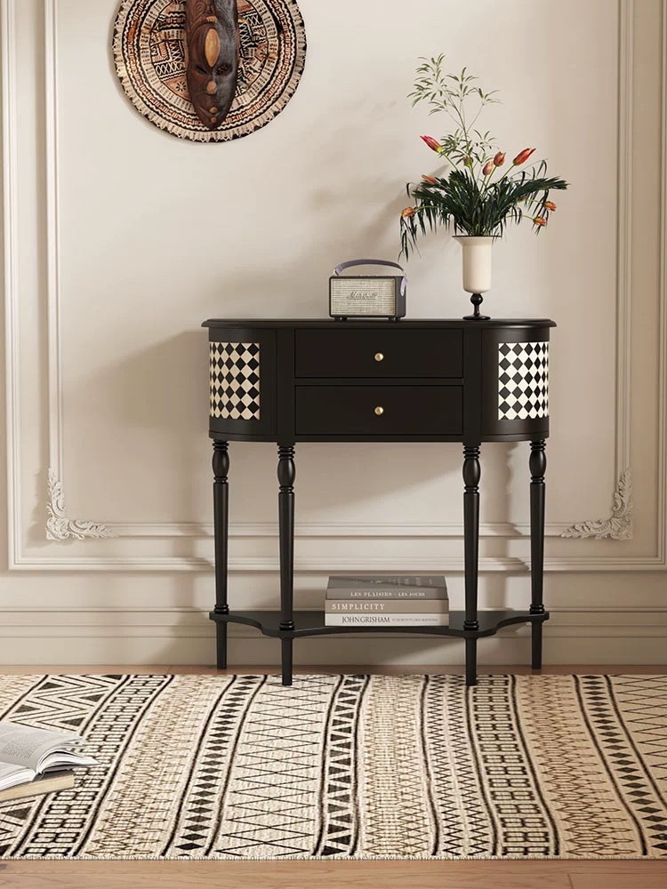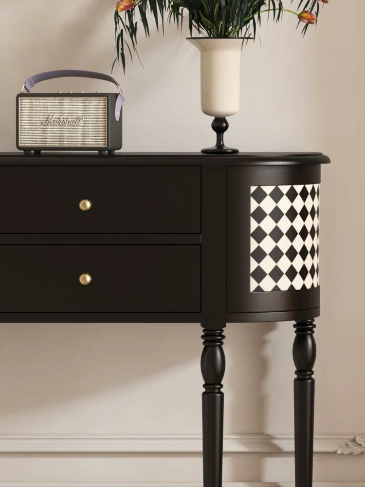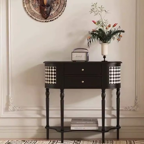 가벼운 프랑스 현대 반 아크 입구 테이블 단단한 나무 입구 홀 블랙 크림 스타일 장식 테이블 좁은 끝보기 테이블