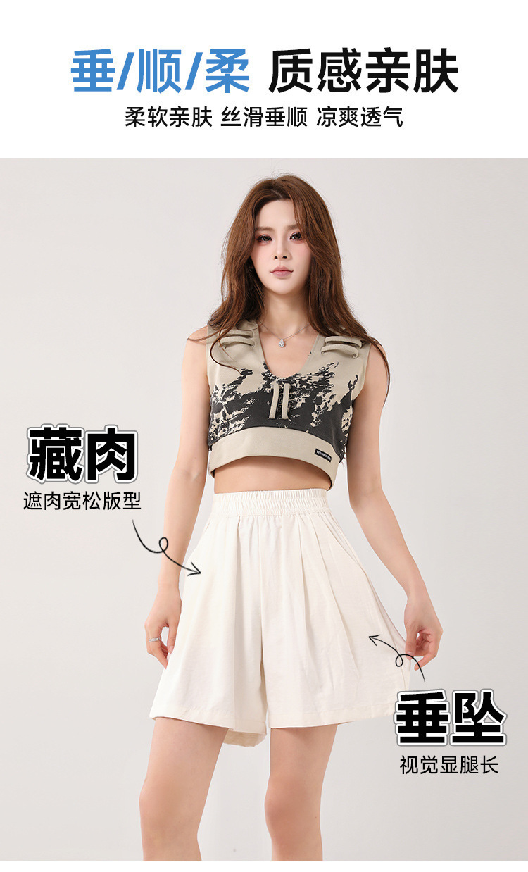 게으른 스타일 야마모토 바지 여름 여성 주름 흰색 젖꼭지 A-라인 반바지 Acetic Acid 고급 프랑스 캐주얼 반바지스토어 가기