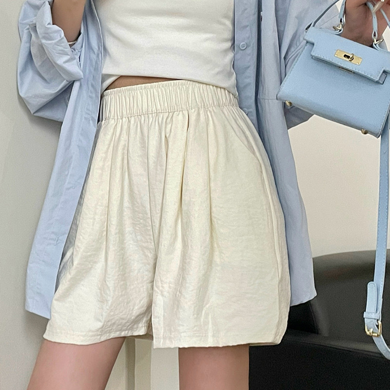 게으른 스타일 야마모토 바지 여름 여성 주름 흰색 젖꼭지 A-라인 반바지 Acetic Acid 고급 프랑스 캐주얼 반바지