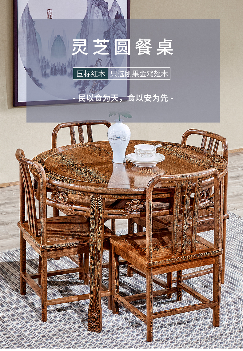 마호가니 라운드 다이닝 테이블 치킨 윙 우드 가정용 다이닝 테이블 작은 아파트 솔리드 우드 라운드 다이닝 테이블 중국 가구 8 불멸 테이블스토어 가기