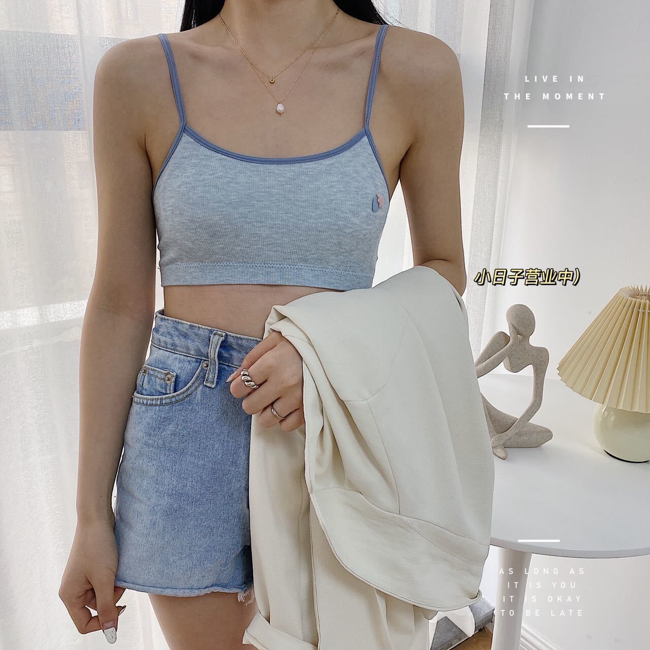새로운 스타일 소녀 튜브 최고 학생 얇은 색면 귀여운 조끼 소녀 개발 기간 아름다운 등 포장 된 유방 속옷스토어 가기