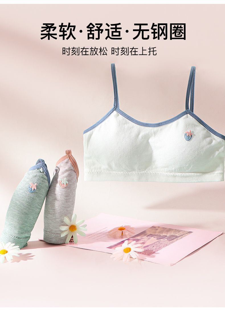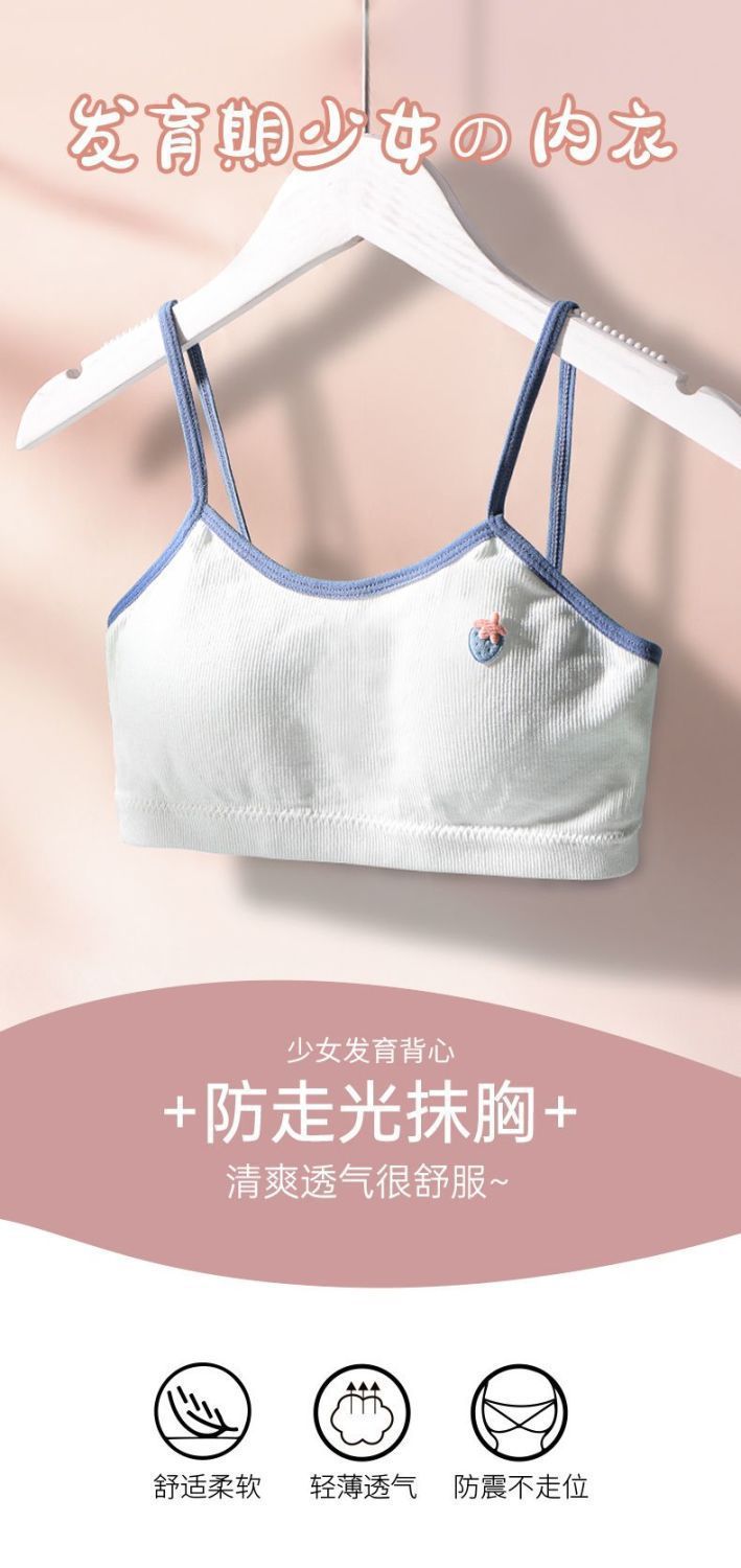 새로운 스타일 소녀 튜브 최고 학생 얇은 색면 귀여운 조끼 소녀 개발 기간 아름다운 등 포장 된 유방 속옷