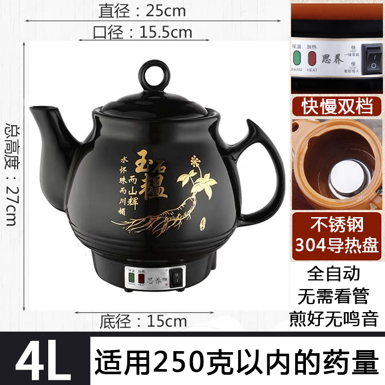 해독 의학 냄비 자동 의학 캐서롤 플러그인 한약 냄비 약 냄비 가정용 4L 세라믹 대용량 약 스튜스토어 가기